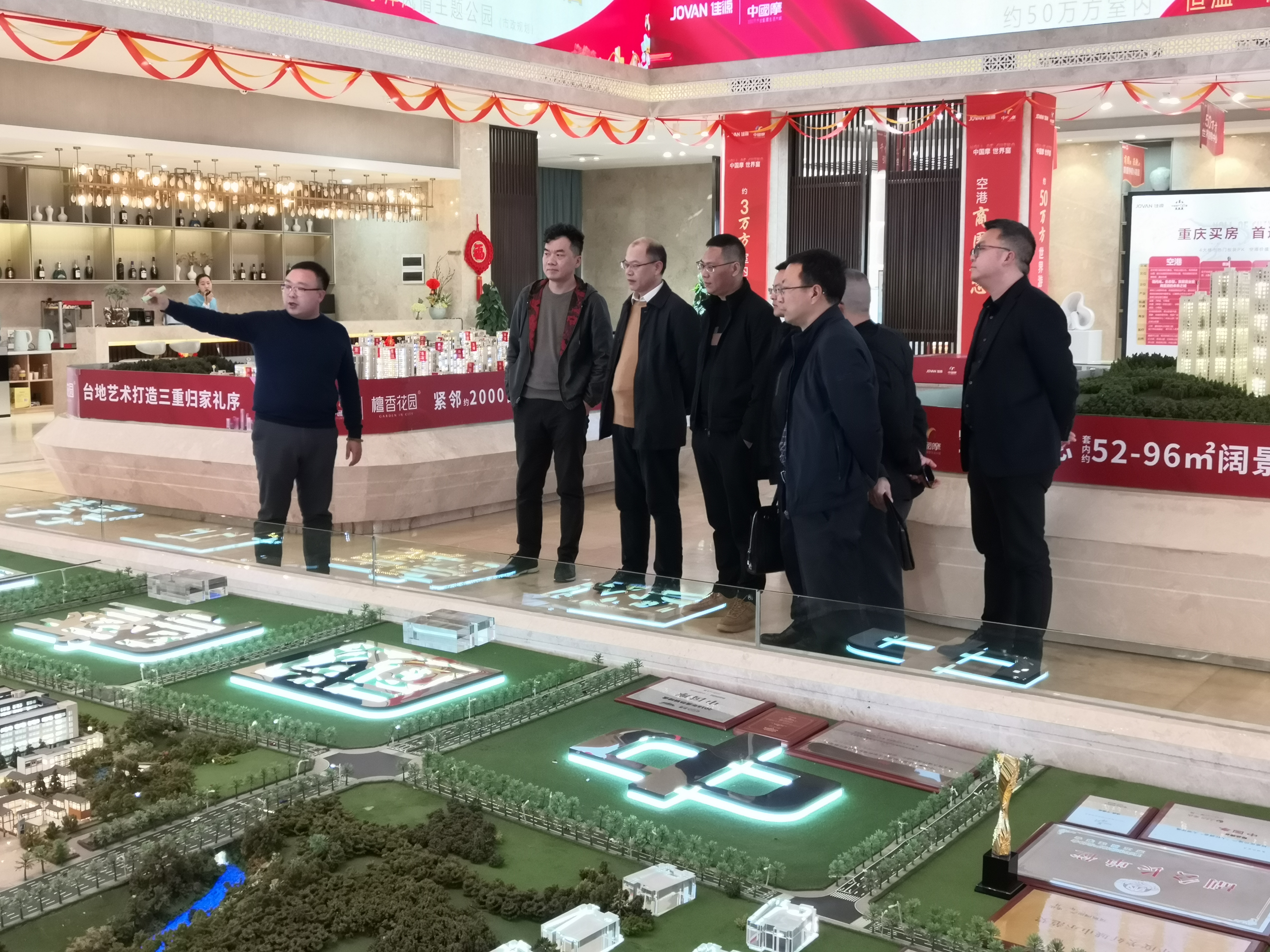考察组一行先参观了佳源公司在渝北区正在开发建设的350万方中国摩文旅大盘项目,项目负责人介绍了中国摩建设的规模、业态以及相关情况。双方随后进行了座谈交流,观看了佳源公司宣传片,佳源公司总裁郑求兴、开发公司总经理闪闪介绍了重庆龙港贸易园规划建设规模、内容、功能区划、投资额度、建设时间以及佳源公司开展的前期工作情况。王小峡主任介绍了涪陵良好的营商环境,对贸易产业园在项目投资主体、投资额度、园区业态、功能布局提出意见,并就佳源公司提出需要协调解决的事项一一进行了回应。原市商务委正厅局级巡视员、市政府督察室督察员陈国华参加座谈会,介绍了涪陵钢龙国际汽车文化公园建设运营过程,强调该项目一直都得到市、区商务部门的大力支持,涪陵区委、区政府对该项目也非常重视,要求龙头港贸易产业园项目定位要准、起点要高、功能要好,打造成辐射带动周边的好项目。最后,双方达成了尽快优化方案,尽快启动投资洽谈程序的一致意见,共同加快推进各项工作,确保项目早日落地。
