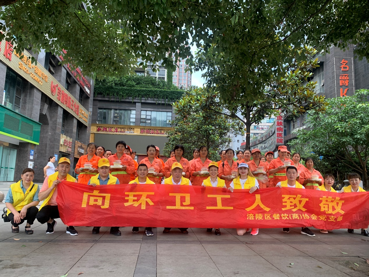 7月1日,餐饮协会党支部开展主题为“一碗豆花饭,温暖一座城”庆祝“七一”特别活动,祝福中国共产党生日,慰问关爱一线环卫工人。支部特邀区委、区委宣传部、区商务委领导前来指导工作,共同为环卫工人送上“爱心早餐”,致敬和感谢“城市美容师”为保持城市整洁靓丽作出的贡献,以优良的工作作风向共产党生日送上祝福。