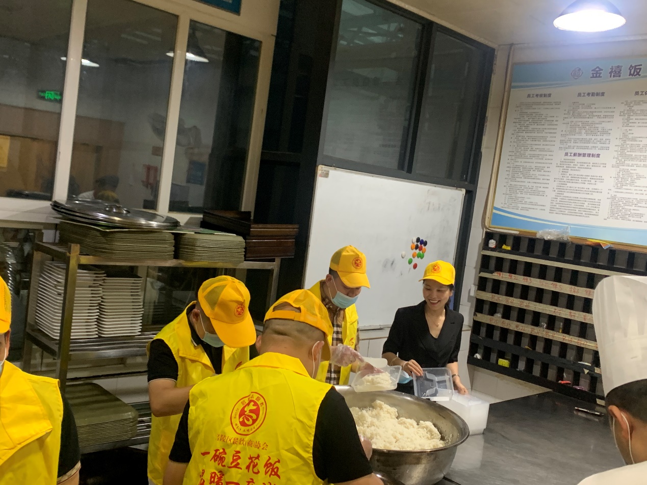早上5时许,餐饮协会党支部组织20名党员和入党积极分子到达早餐制备站点,在党支部书记奚正国的统筹安排下,开始清点分装,整个制备打包现场工作有序开展。