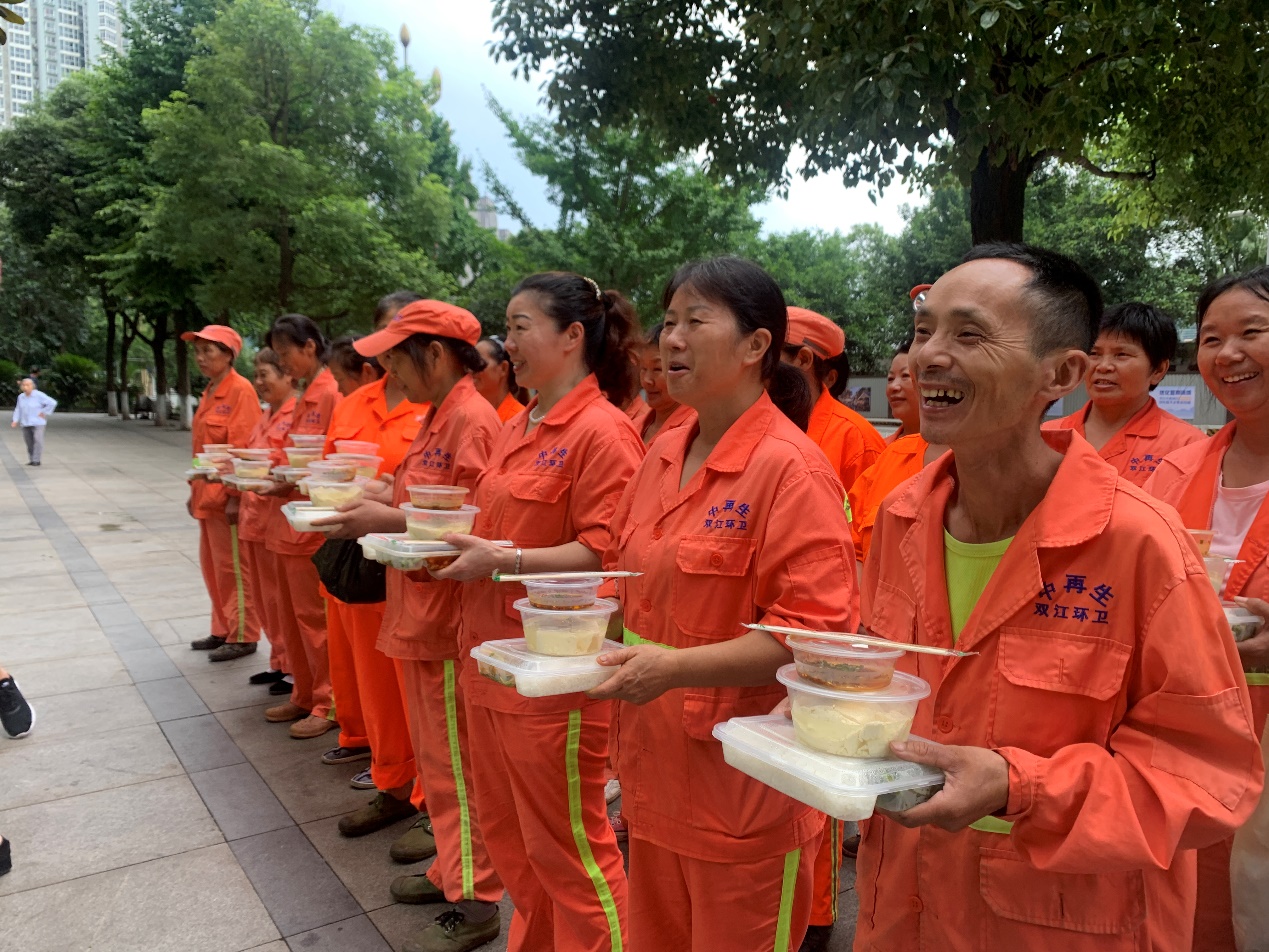 奚正国书记在现场说道:“今天是党的生日,在涪陵城街头,身处在一线的环卫工人还有很多很多,他们担负着整个涪陵城区的清扫保洁任务,全天候不间断地清运城市生活垃圾,用汗水换来城市的美丽和整洁。在中国共产党生日当天,为环卫工人做实事献爱心,让整个社会对底层环卫工人加倍关注和关怀,让社会更加有爱,才能彰显出“善”和“爱”的人格魅力与城市文明之美。”