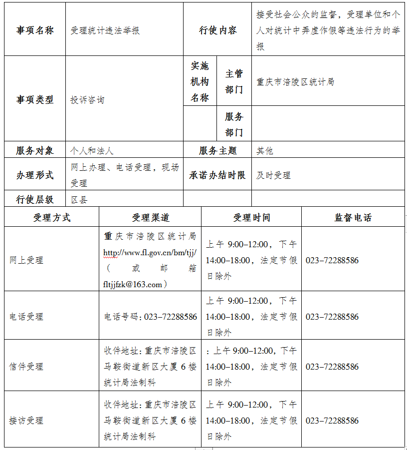 重庆市涪陵区统计局受理统计违法举报服务指南