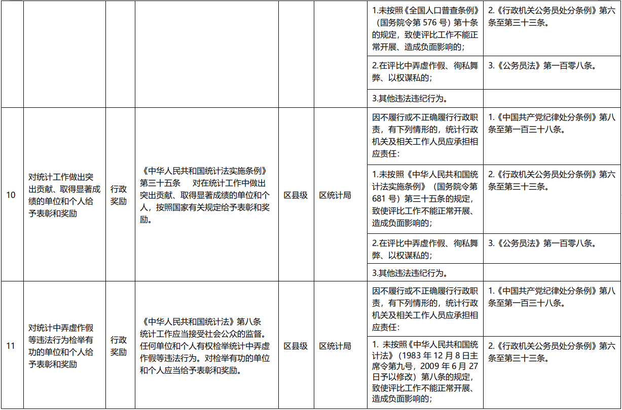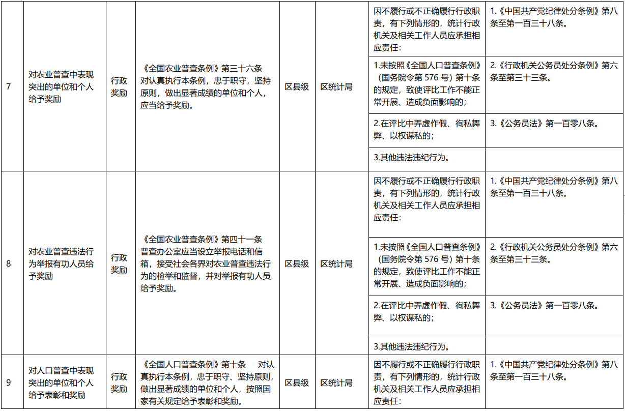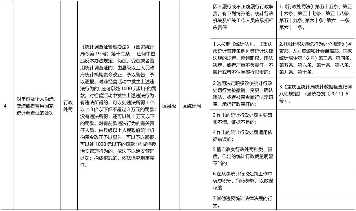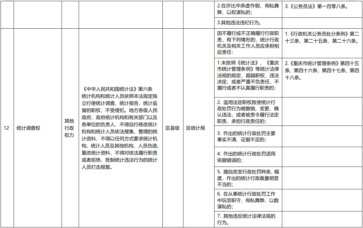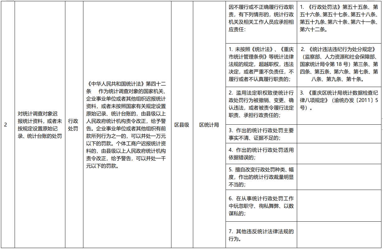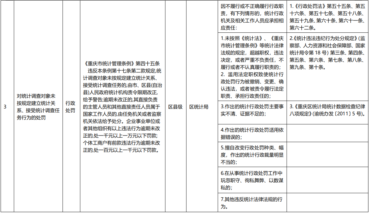 重庆市涪陵区统计局行政权力事项清单(2020年)