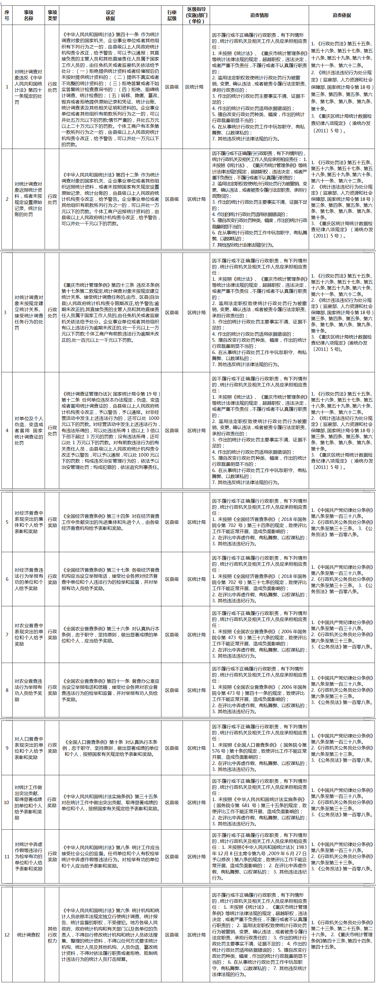 重庆市涪陵区统计局行政权力事项清单(2021年)