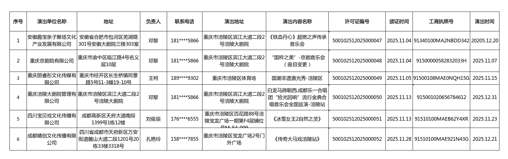 演出活动信息数据(2025年11月1日—2025年11月30日)