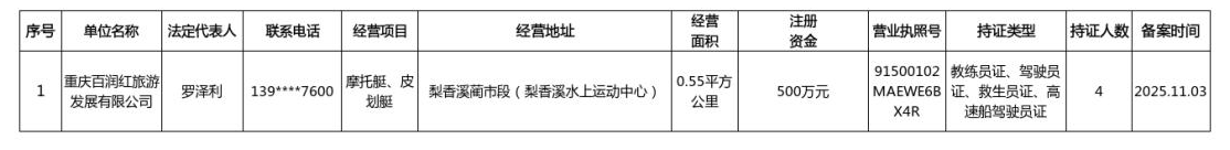 涪陵区一般性体育项目经营单位备案(2025.11.01-2025.11.30)