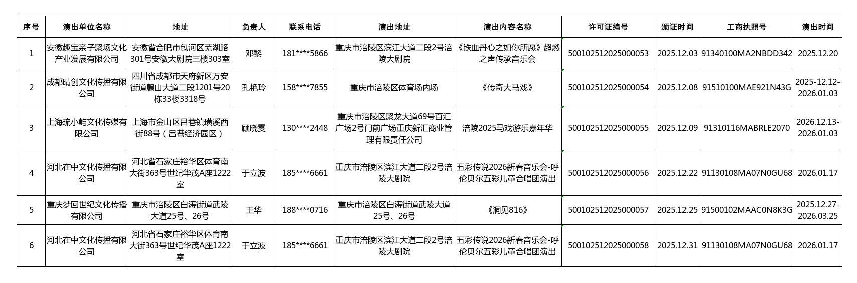 演出活动信息数据(2025年12月1日—2025年12月31日)