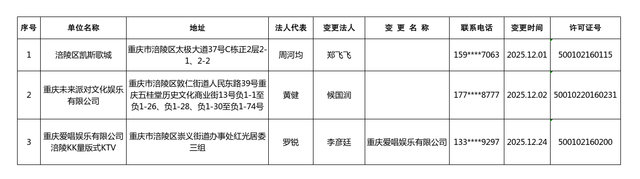 文化旅游(体育)市场证照变更数据(2025年12月1日-12月31日)