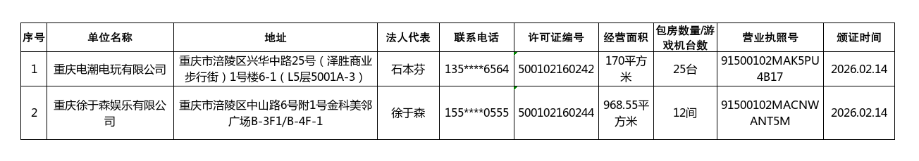文化娱乐场所许可办证(2026年2月1日—2026年2月28日)