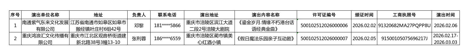 演出活动信息数据(2026年2月1日—2026年2月28日)