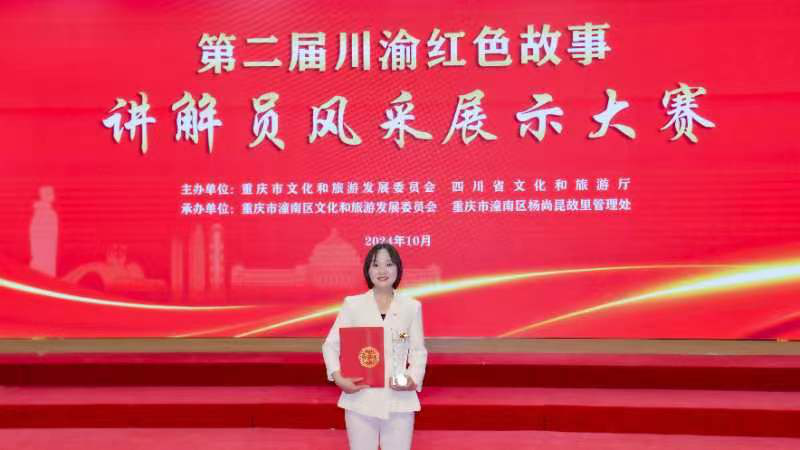 10月18日,第二届川渝红色故事讲解员风采展示大赛在重庆市潼南区举办。大赛由重庆市文化和旅游发展委员会、四川省文化和旅游厅主办,来自川渝两地共20位参赛选手齐聚一堂,以独特的视角生动讲述了川渝两地的红色经典故事。经过激烈的角逐,涪陵816工程讲解员邓小芳以《千古丰碑——816》获得最佳人气奖。川渝两地是光荣的红色之地、英雄之地,通过两地红色故事的交流,全面加强红色讲解员人才队伍建设,不断传递红色文化正能量,为巴蜀文化旅游走廊建设贡献更大的力量。