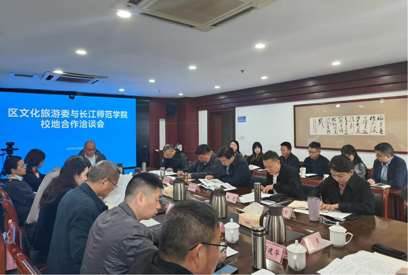 4月8日,区文化旅游委与长江师范学院举行洽谈会,进一步推进校地合作。长江师范学院国内合作处处长谢艳、副处长李吉,外国语学院、经济与管理学院、音乐学院、美术学院等7个学院院领导参加会议。区文化旅游委党委书记、主任夏强伟主持会议。