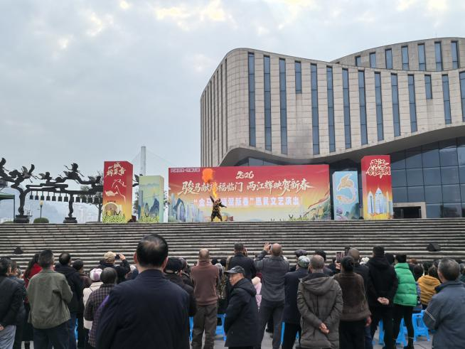 2026年春节期间,紧扣“骏马献瑞福临门 两江辉映贺新春”主题,在锦绣洲广场创新推出的“景、展、演”三位一体互动体验系列活动持续火热。活动通过场景营造、非遗展销、惠民演出深度融合,为广大市民游客奉上一场年味浓郁、体验丰富的节日文化盛宴,有力激活了节日文旅消费市场,营造出喜庆祥和的节日氛围。
