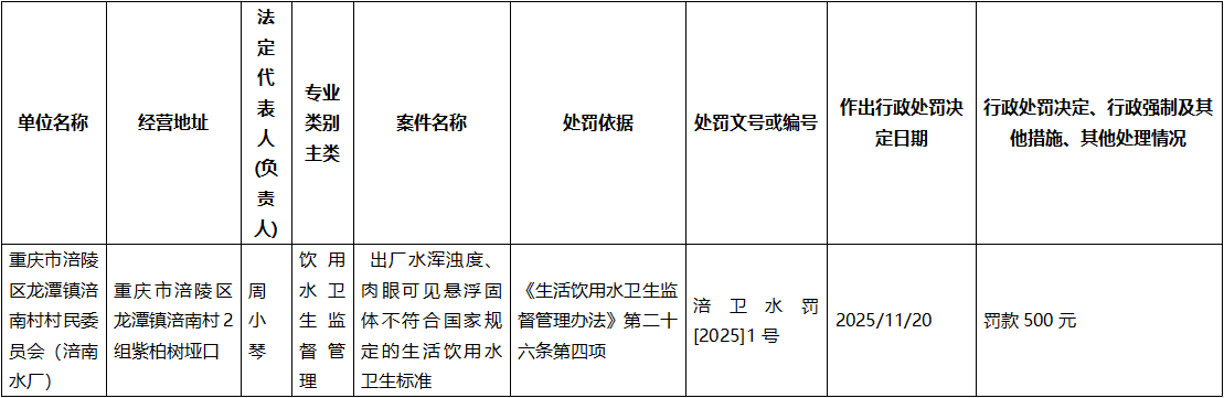 2025年11月涪陵区卫生健康委员会行政处罚汇总(二)