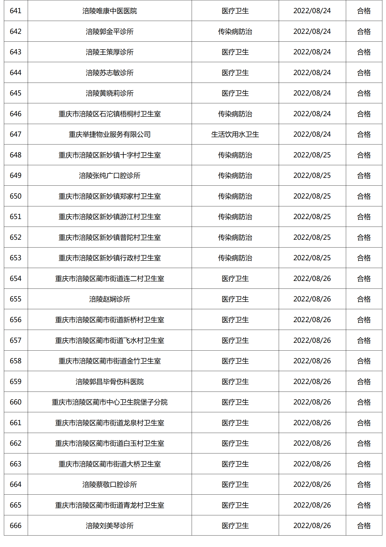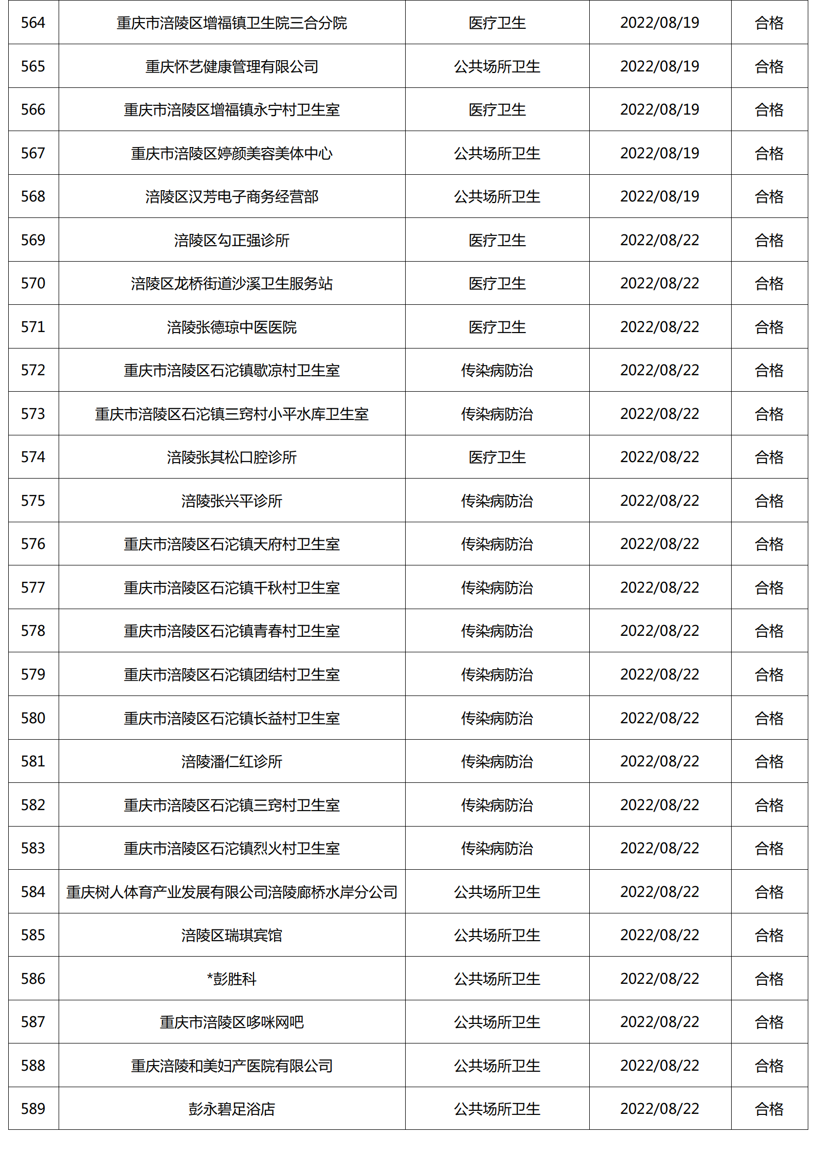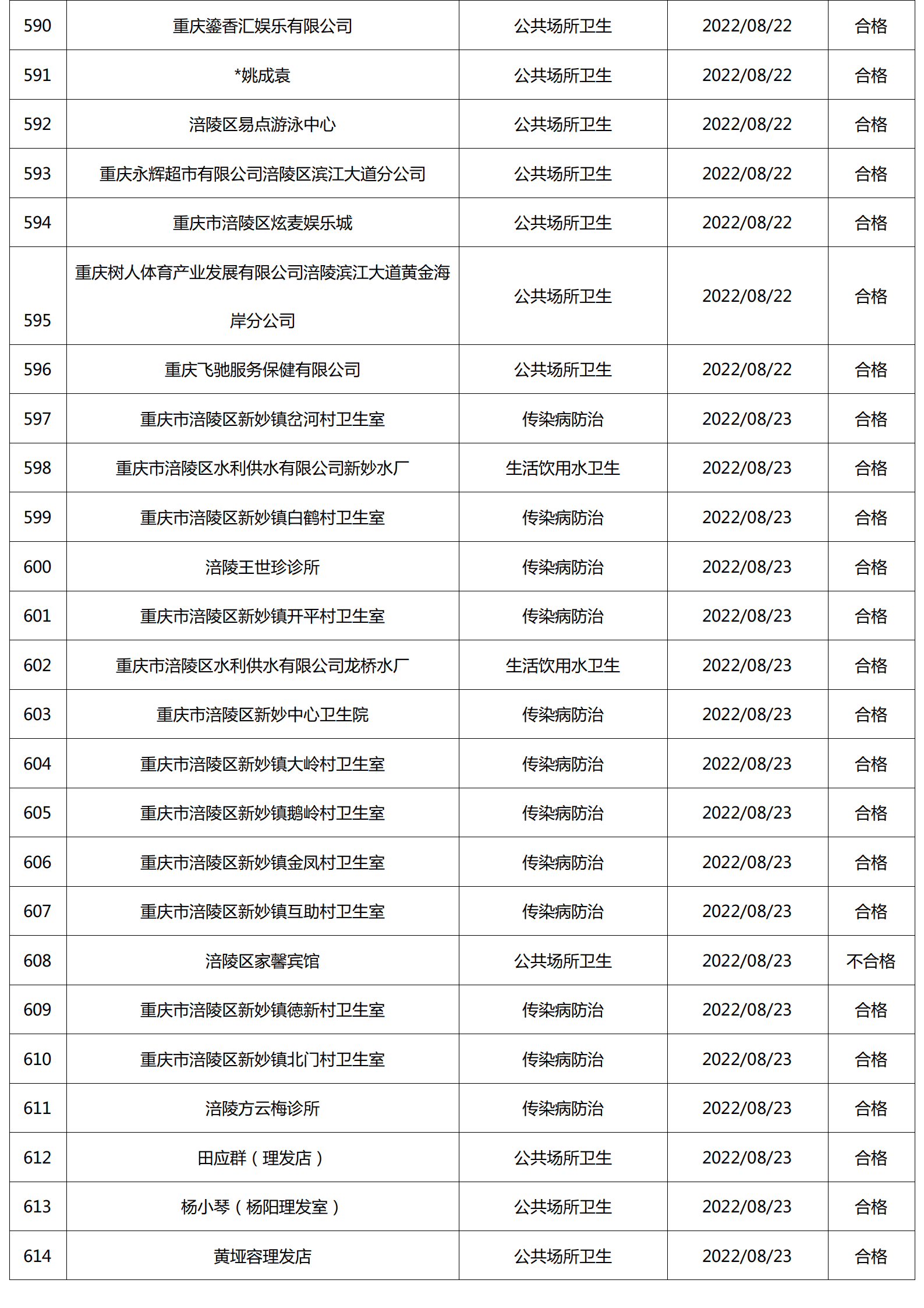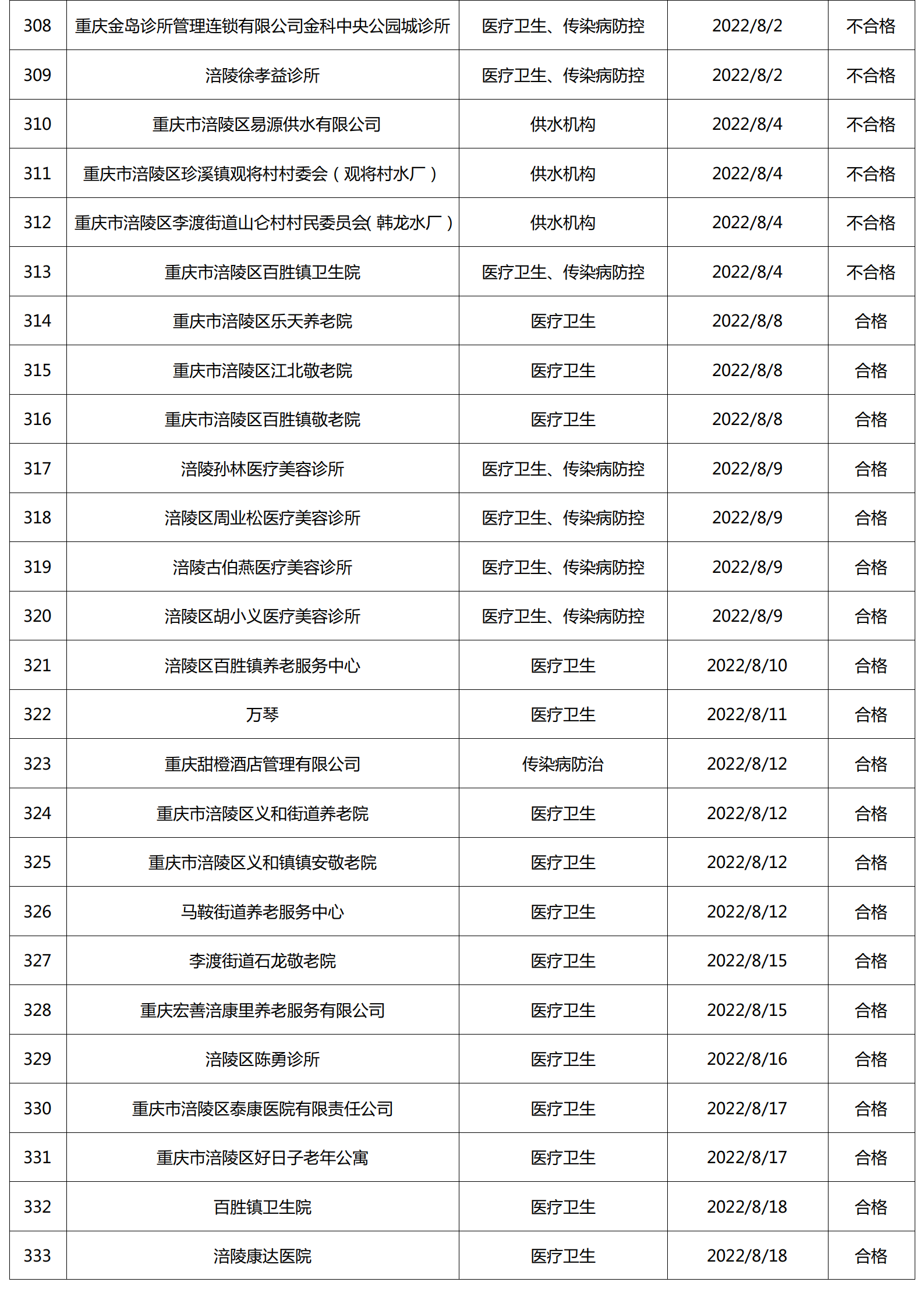 2022年8月涪陵区卫生健康行政检查情况.docx