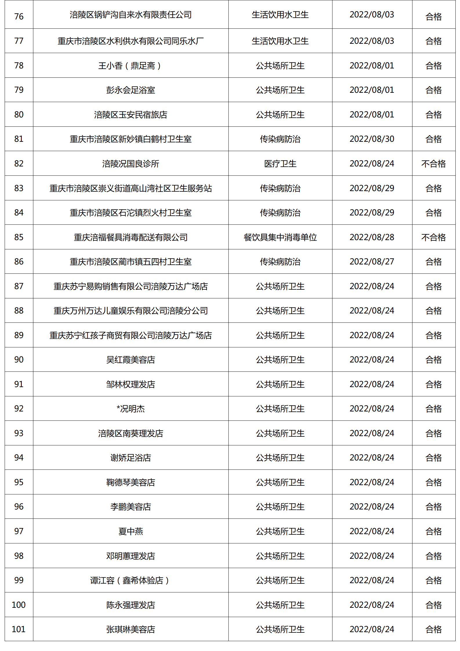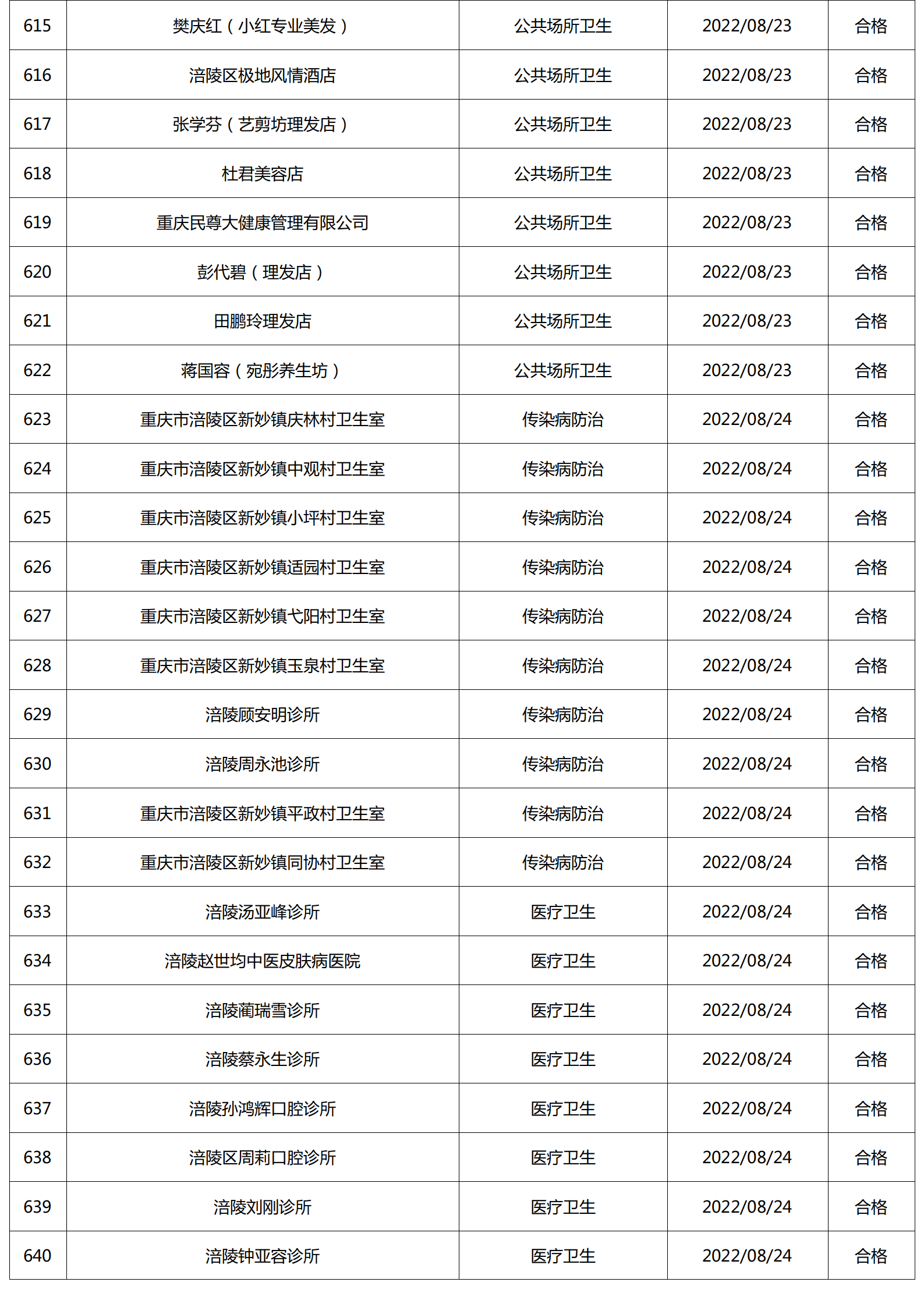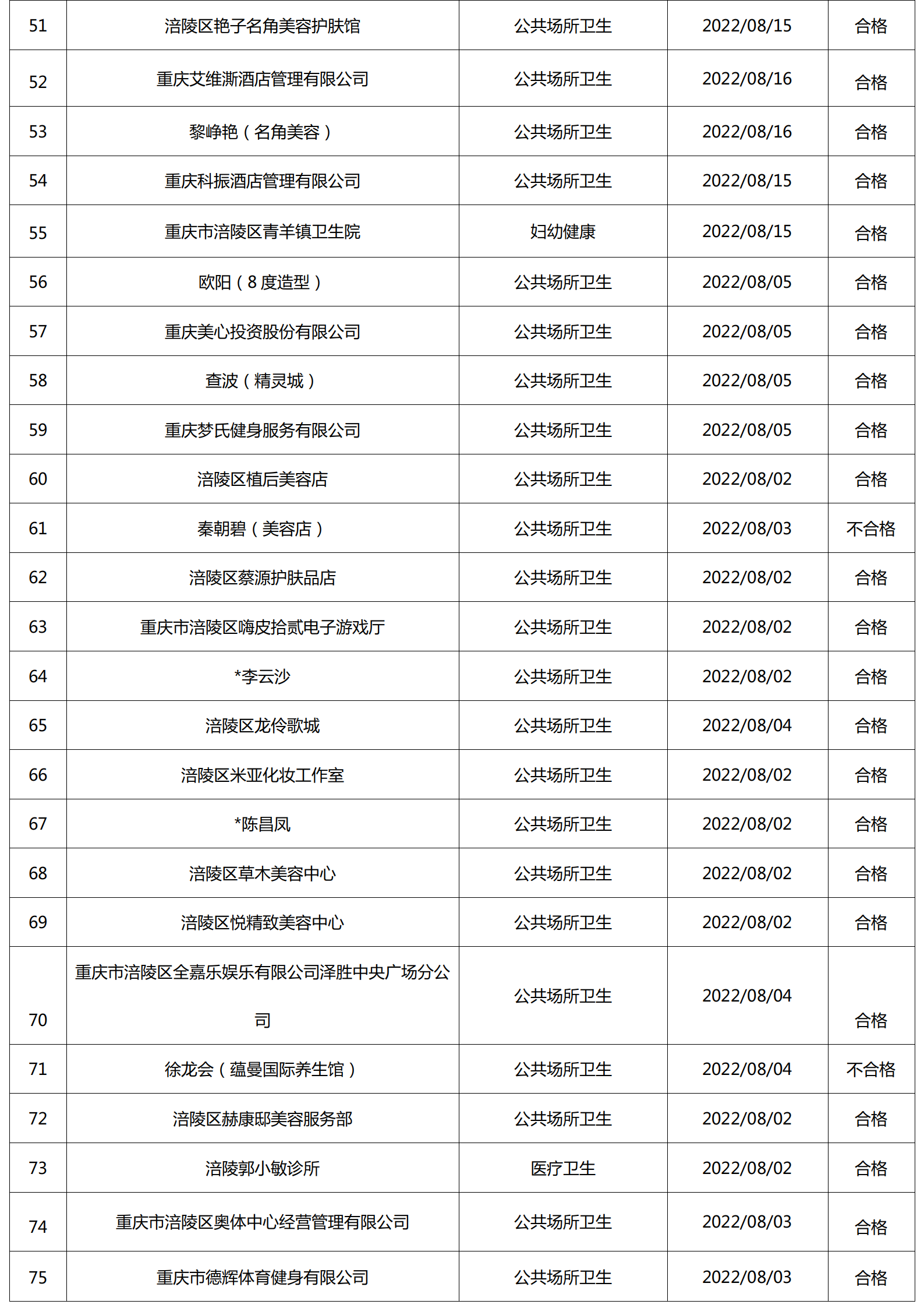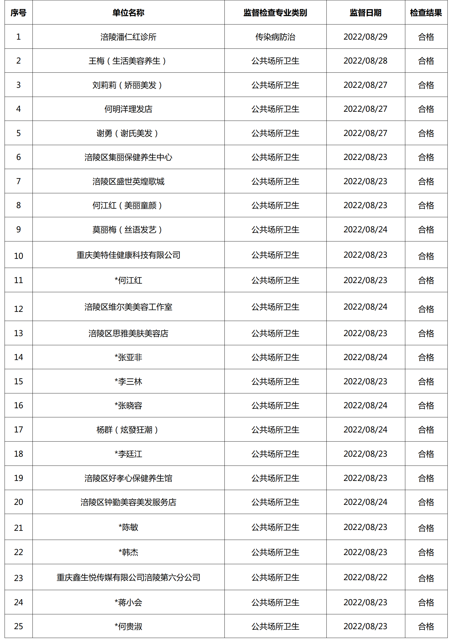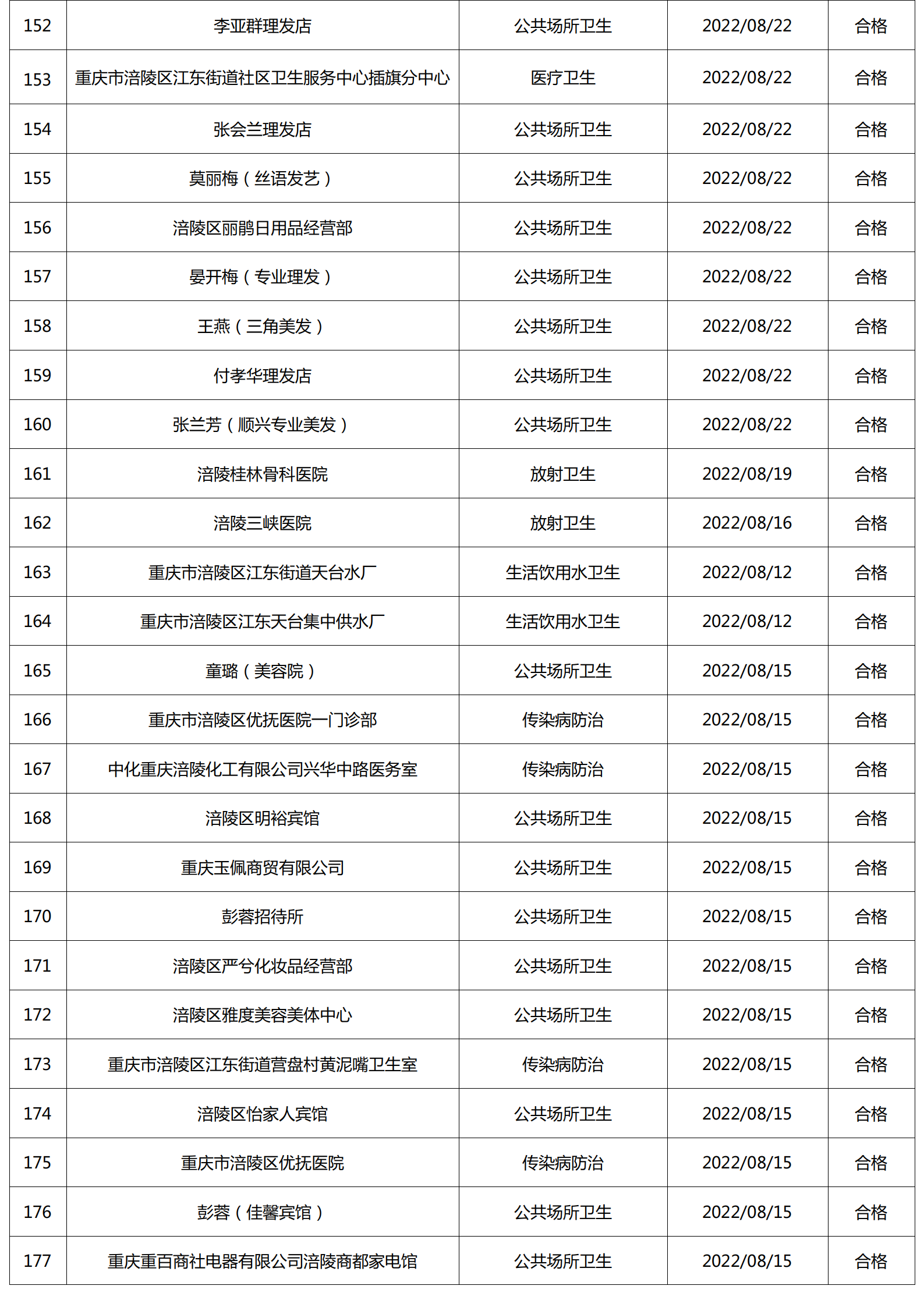 2022年8月涪陵区卫生健康行政检查情况.docx