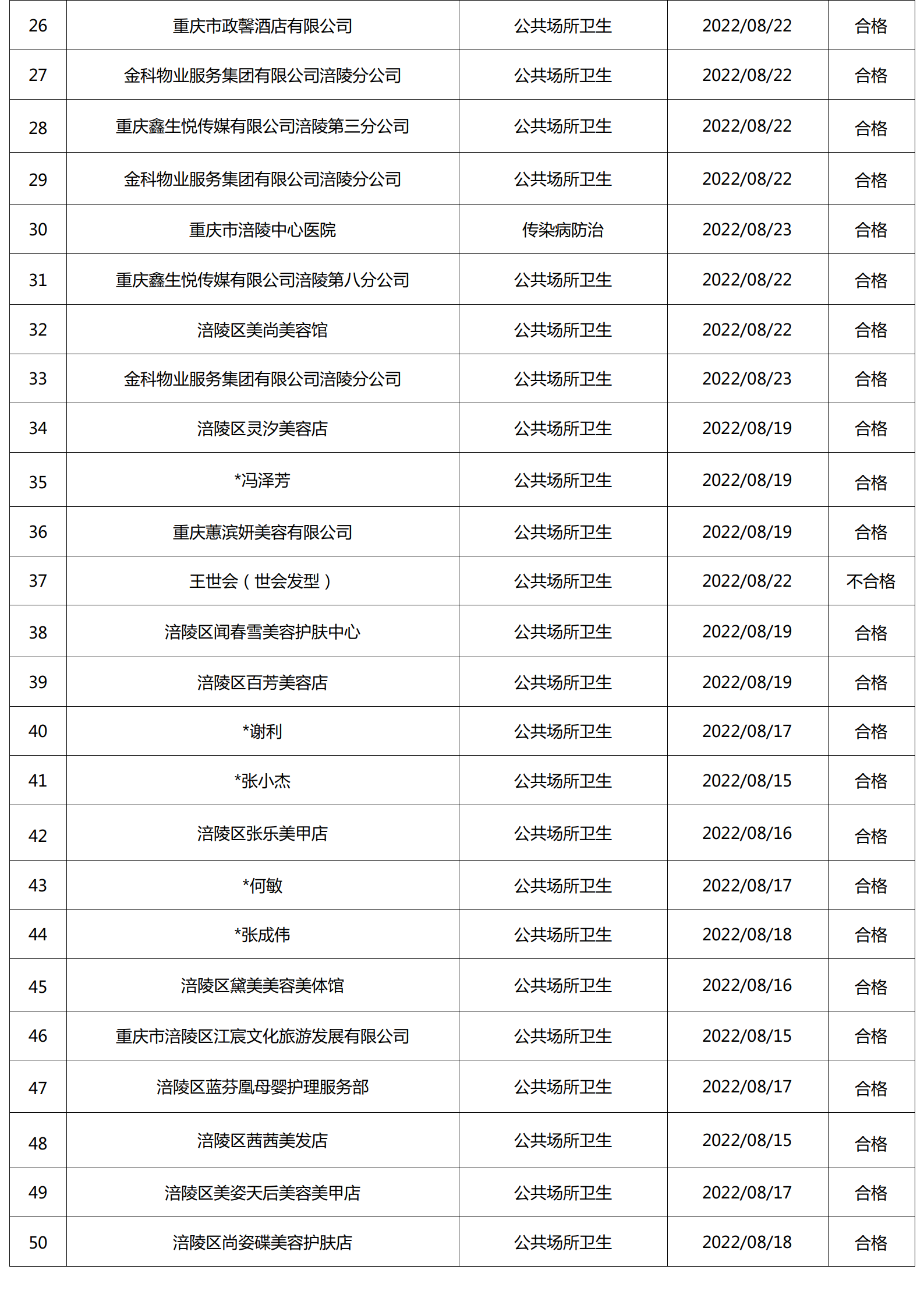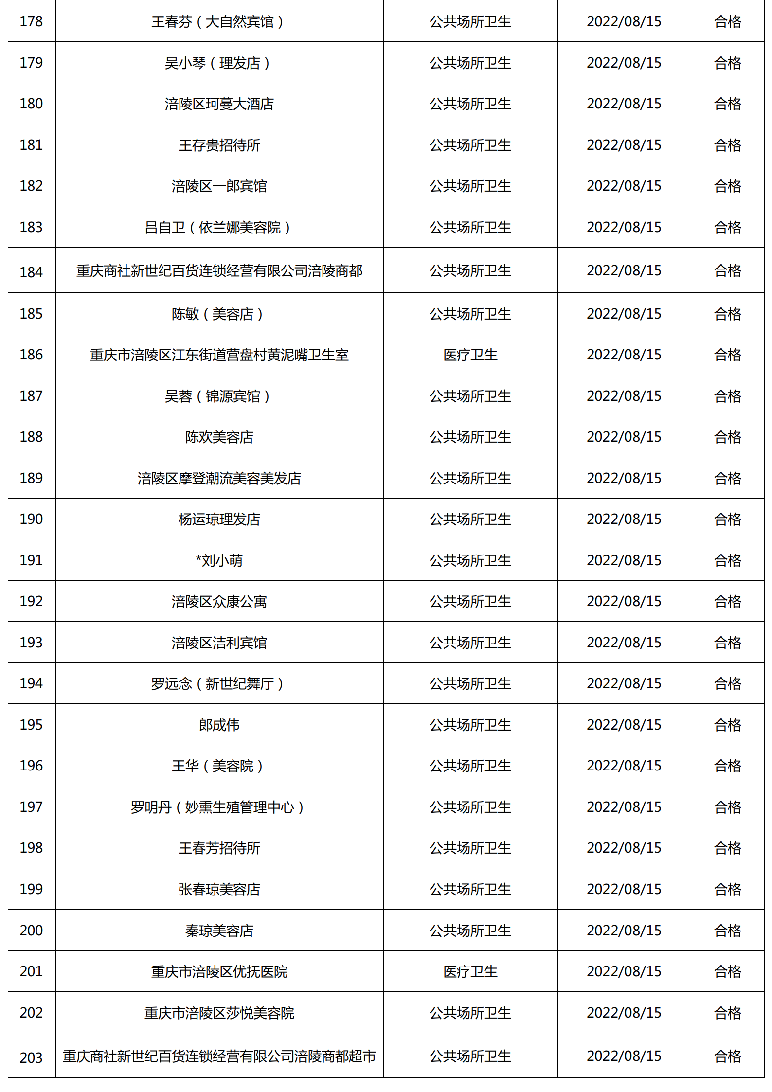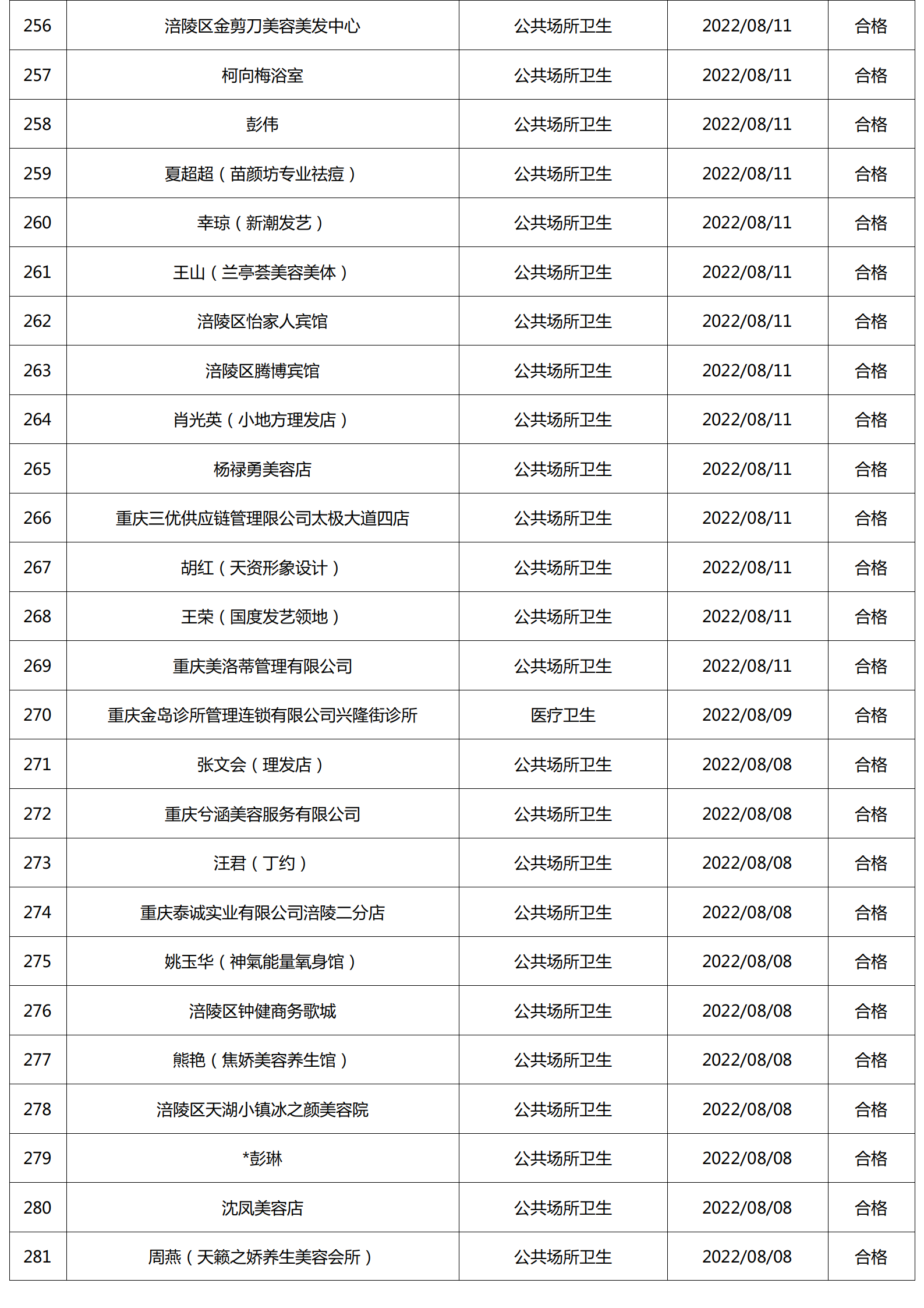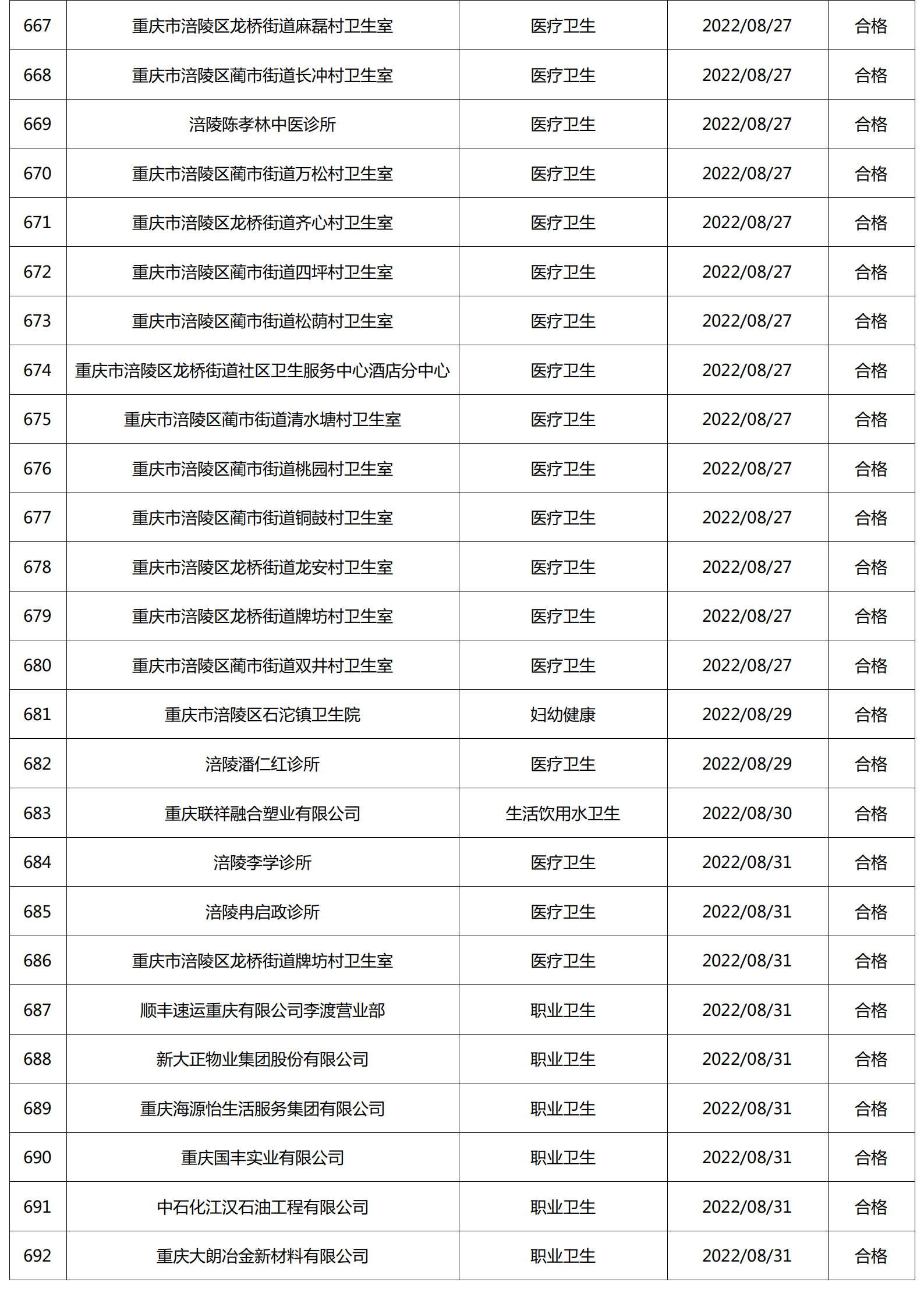 2022年8月涪陵区卫生健康行政检查情况.docx