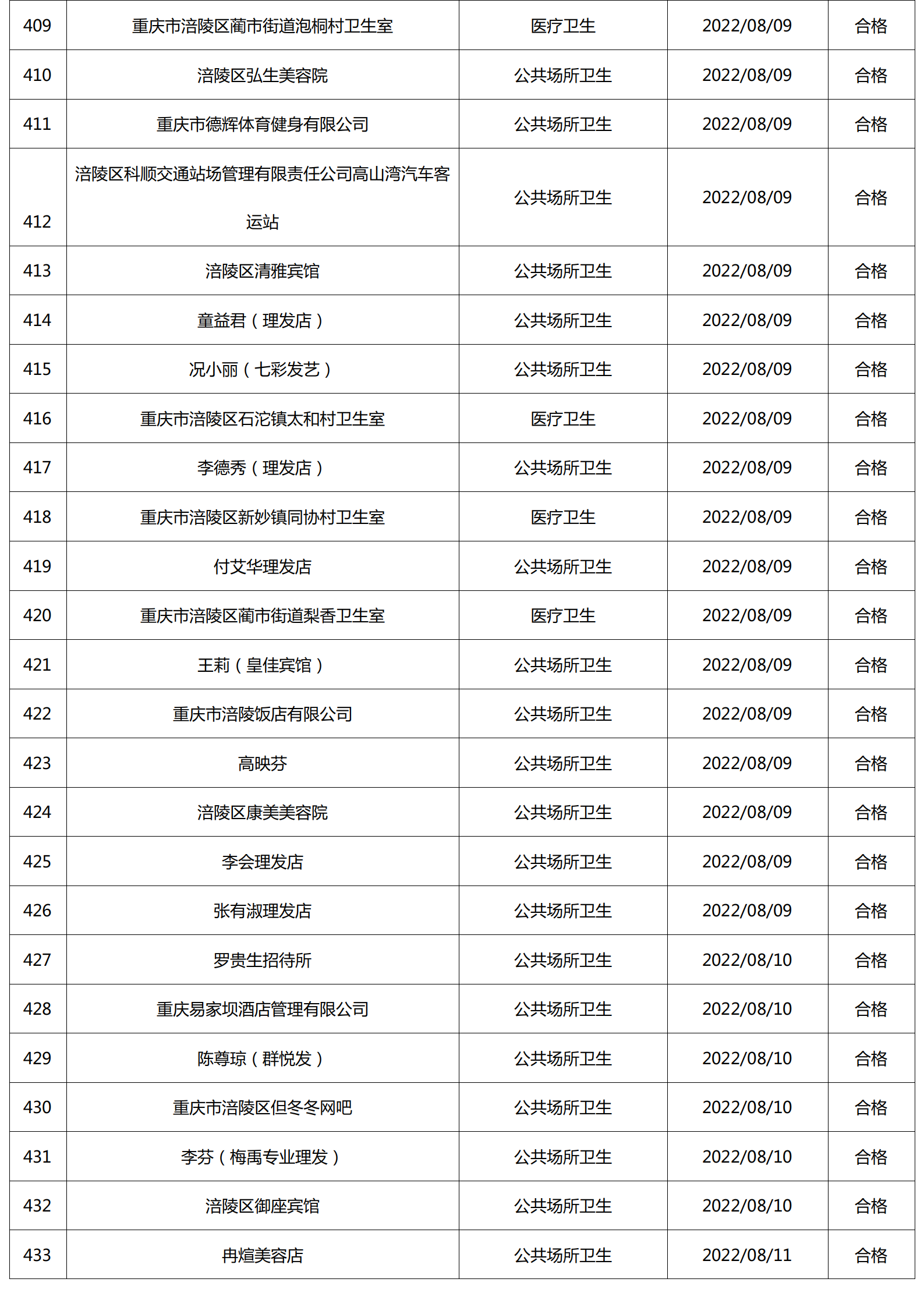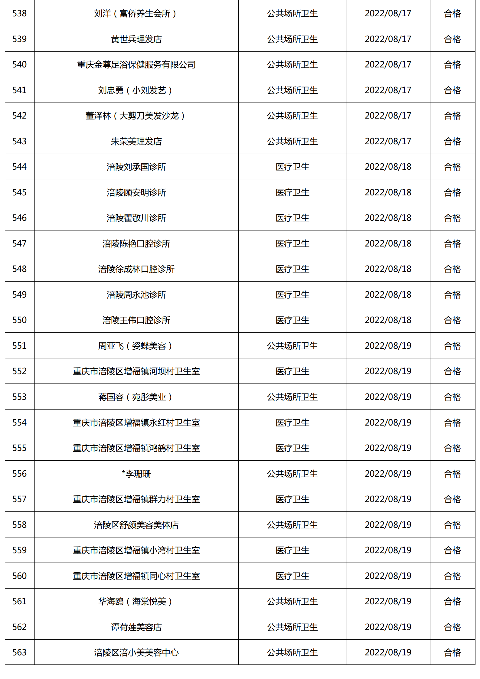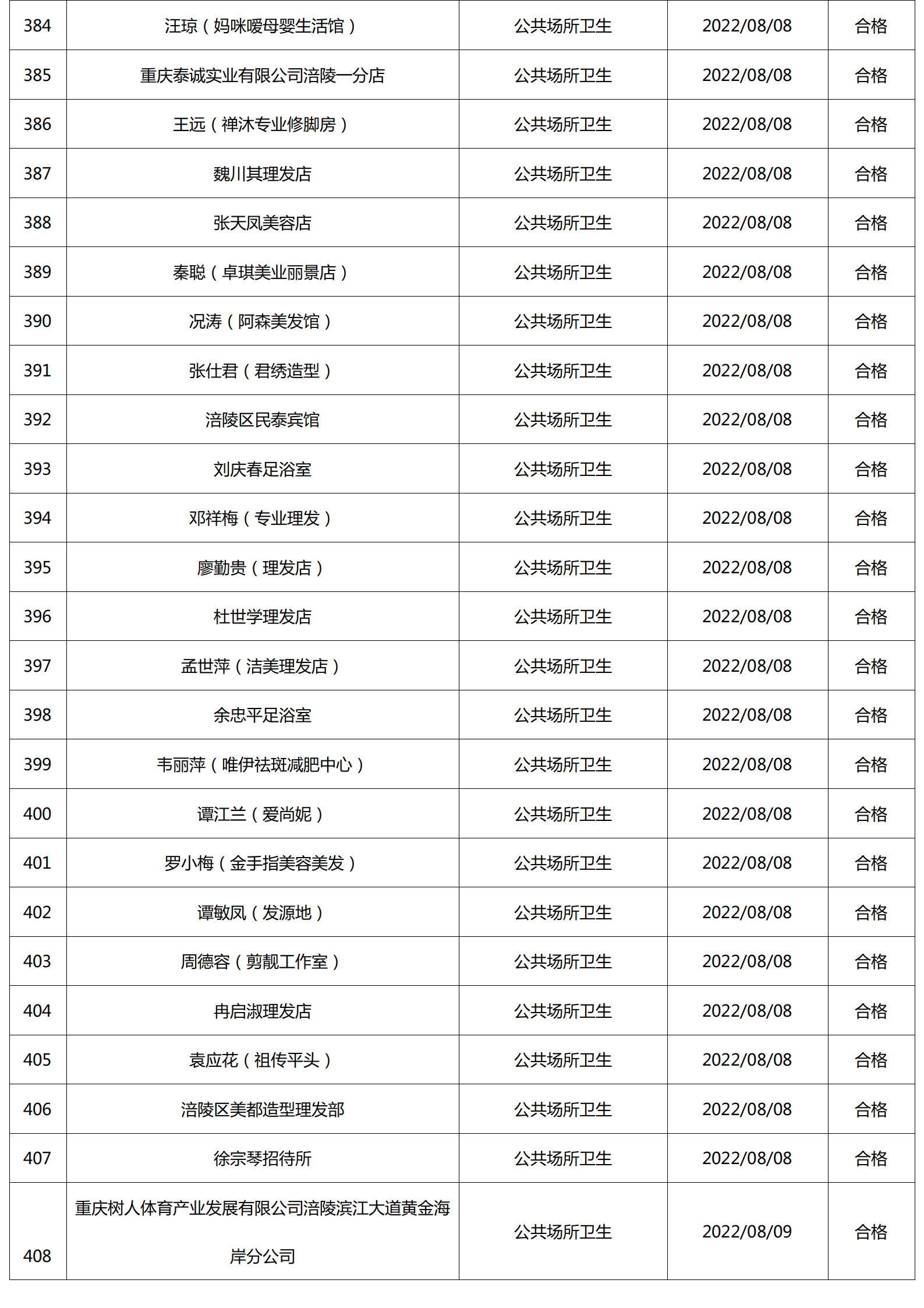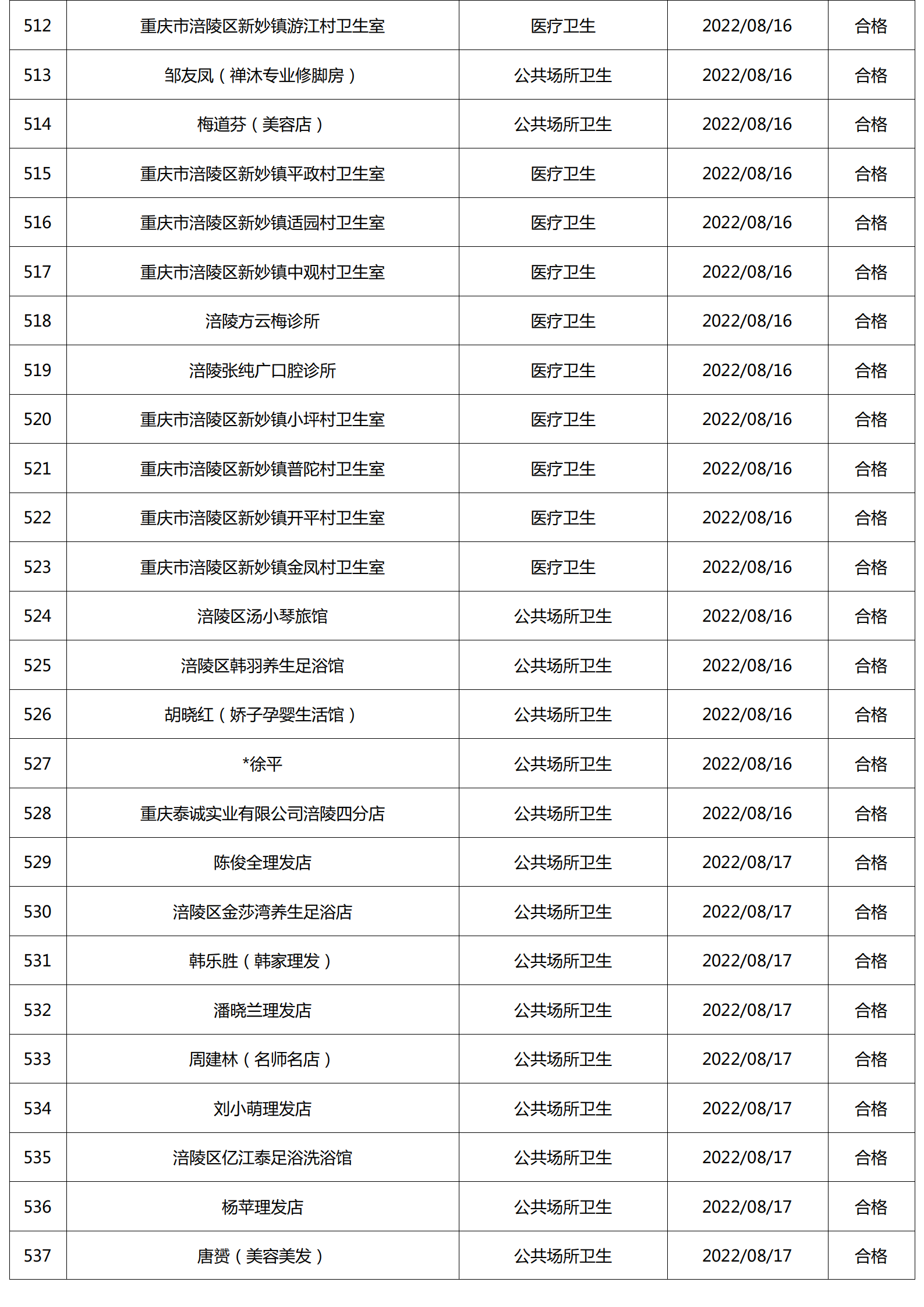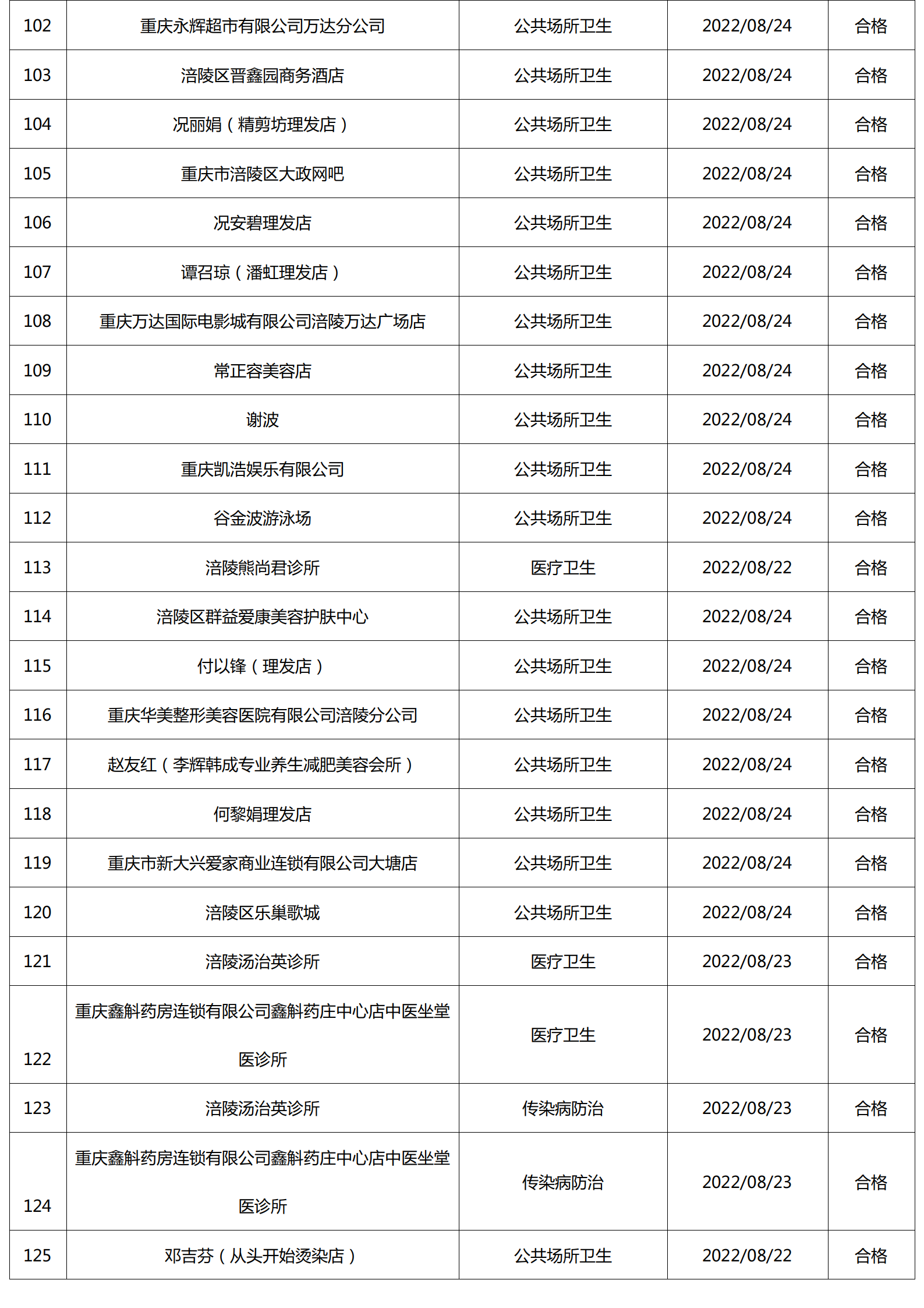 2022年8月涪陵区卫生健康行政检查情况.docx