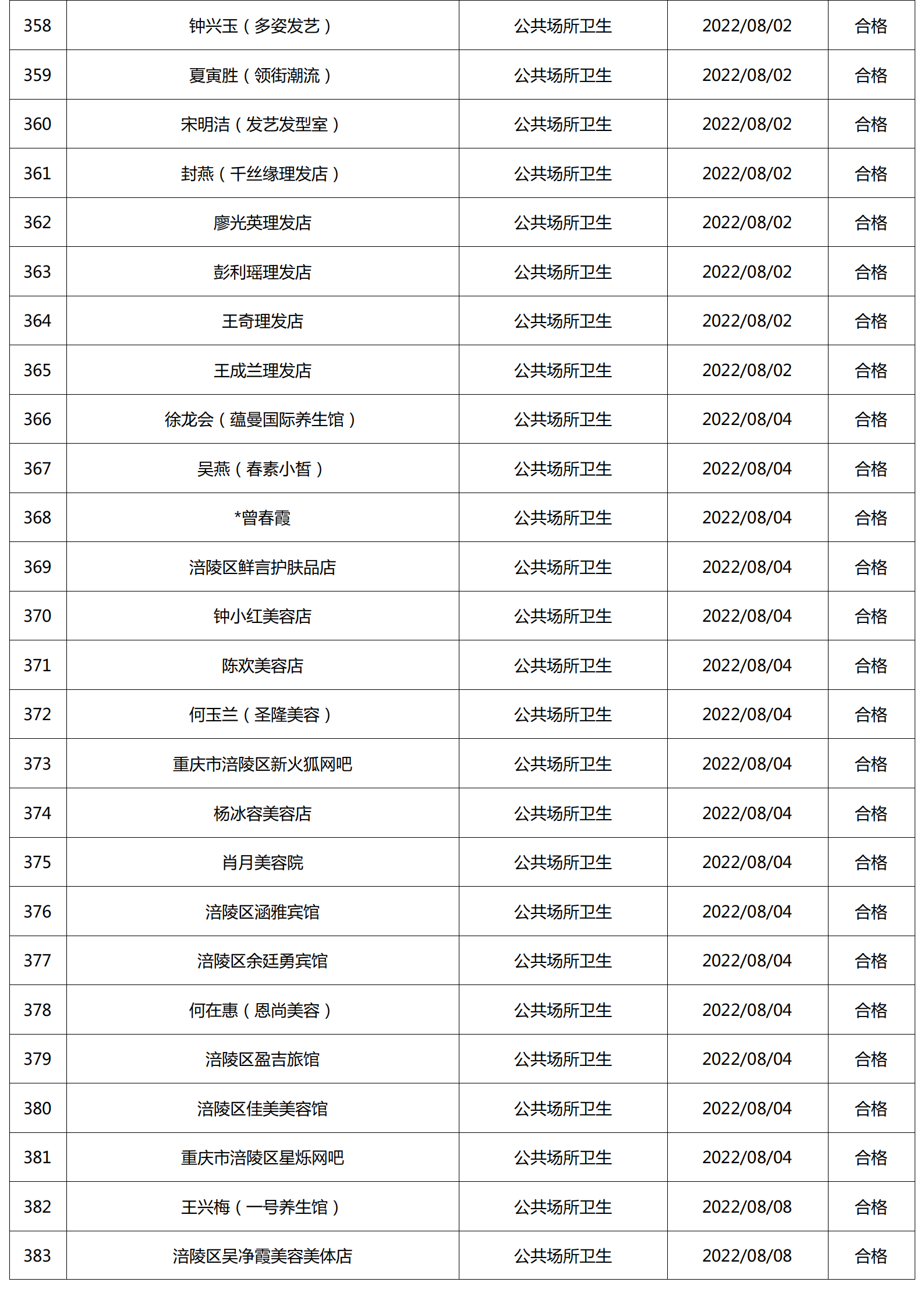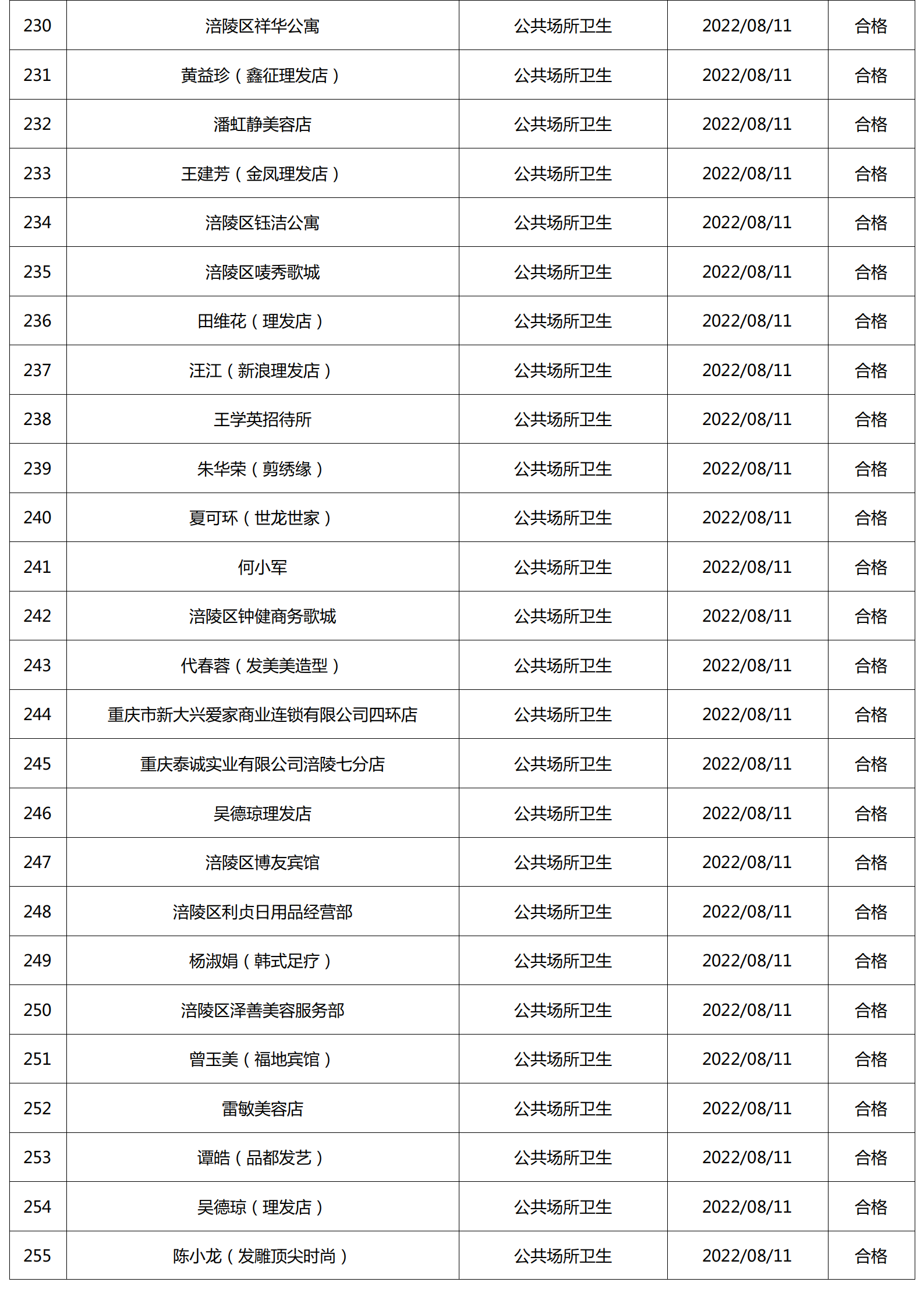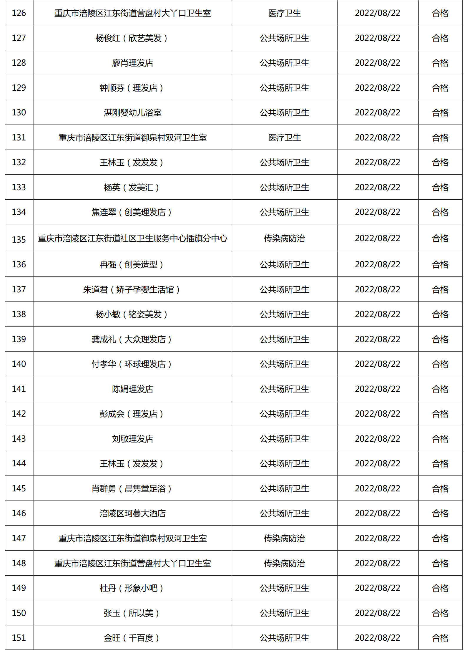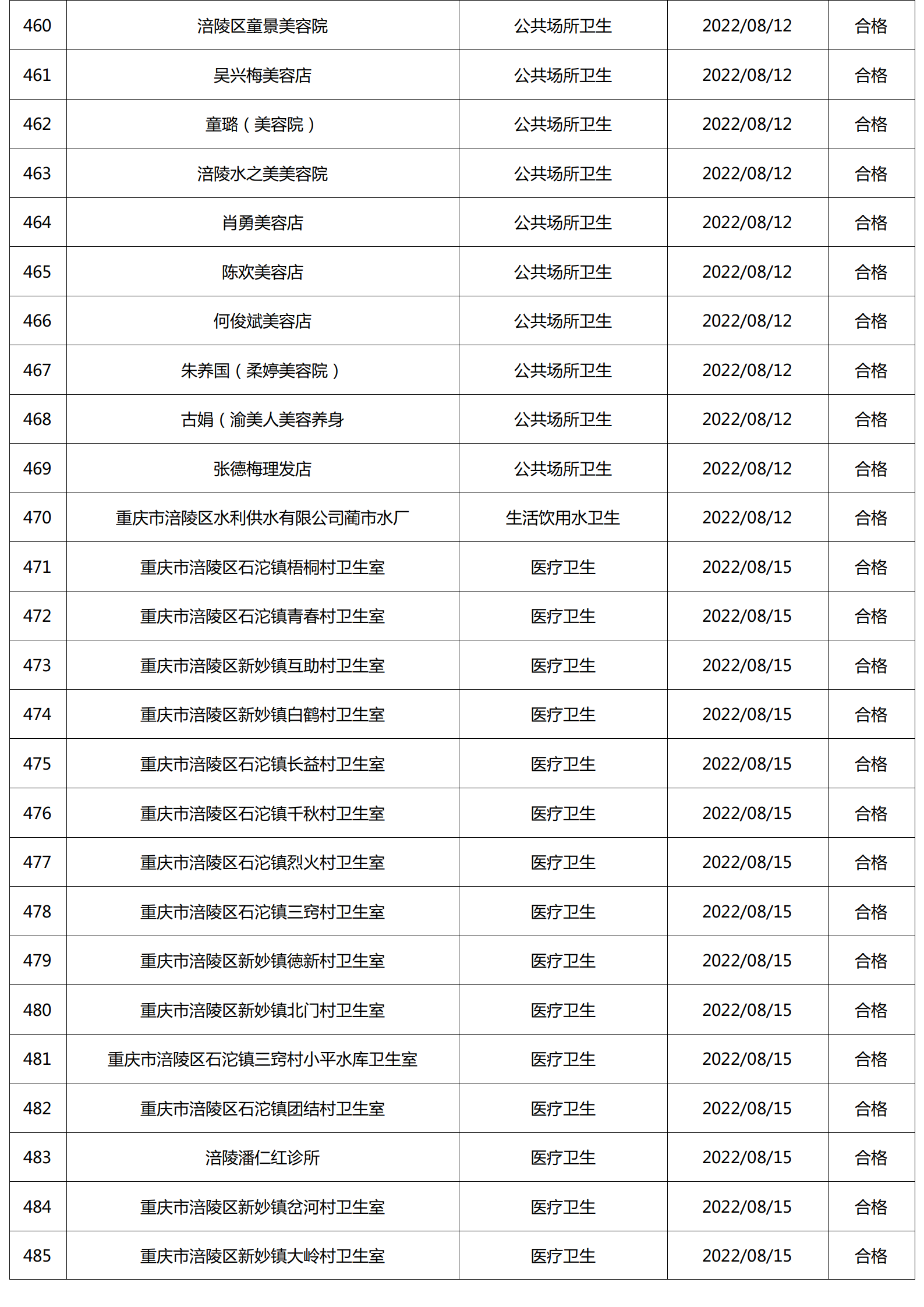 2022年8月涪陵区卫生健康行政检查情况.docx