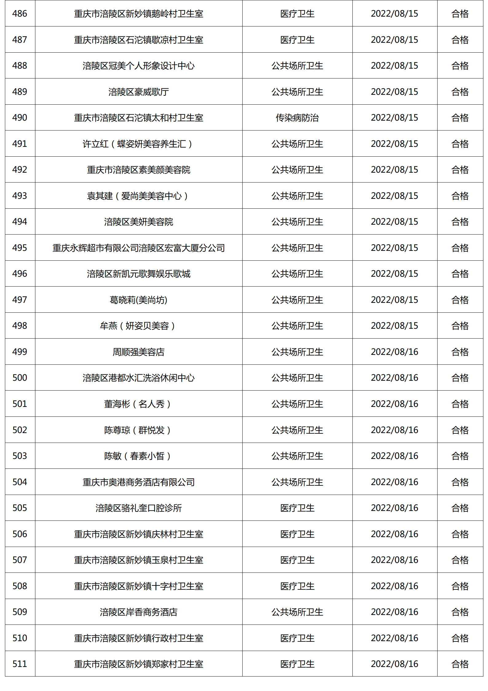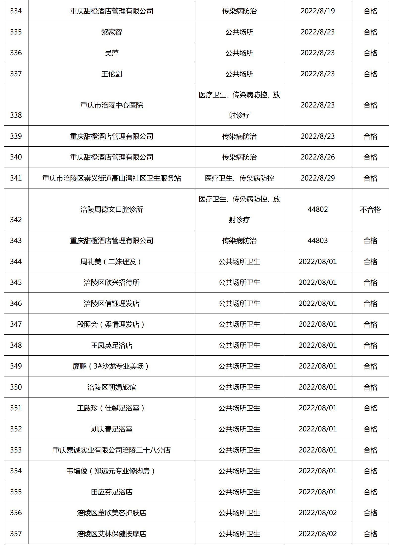 2022年8月涪陵区卫生健康行政检查情况