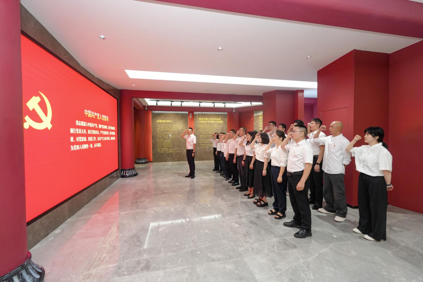 在基地大厅,全体党员整齐列队,面向党旗庄重宣誓,重温入党誓词,提醒自己时刻铭记党员身份。在讲解员引导下,党员们认真学习我区违反中央八项规定精神典型案例,集中观看专题警示教育片,用身边人身边事敲响拒腐防变的警钟。