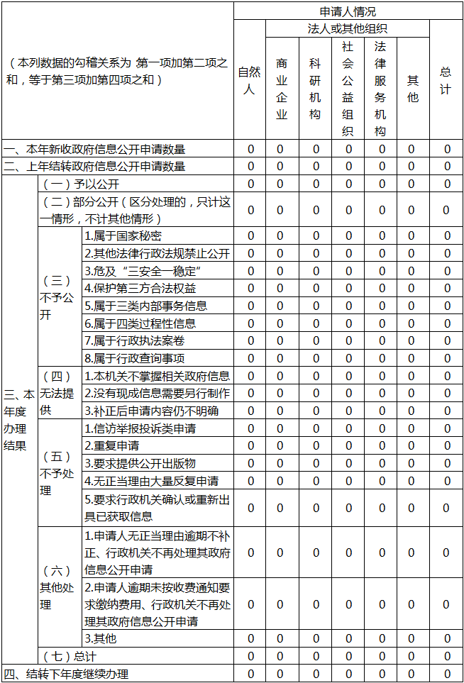 (二)依申请公开。认真学习政府信息依申请公开受理程序,依法依规受理信息公开申请。2025年,我局未收到依申请公开的政府信息公开申请,也没有因政府信息公开而申请行政复议、提起行政诉讼的情况。2024年结转政府信息公开申请0件。