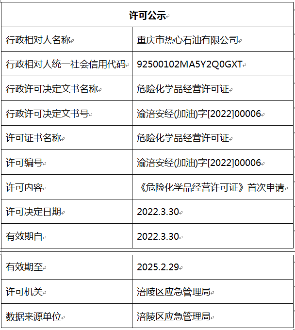 重庆市热心石油有限公司行政许可