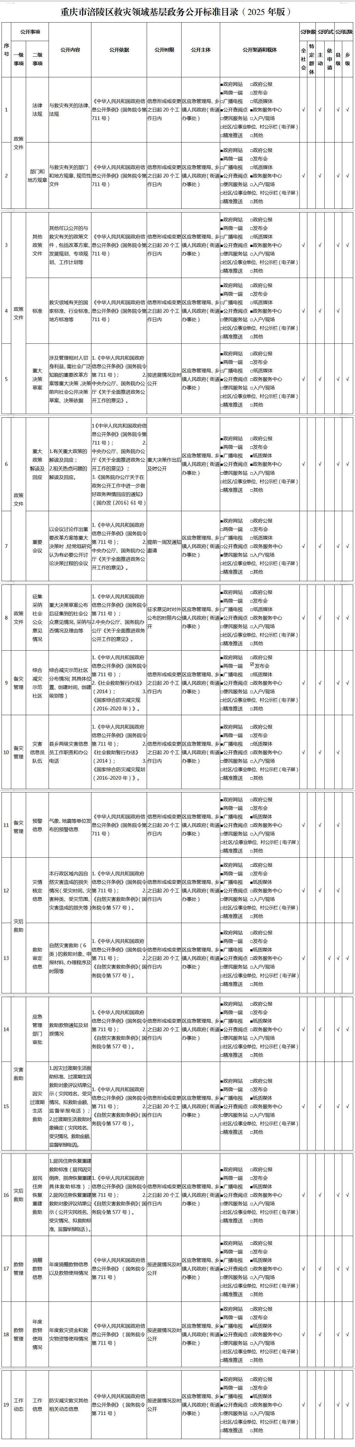 重庆市涪陵区救灾领域基层政务公开标准目录