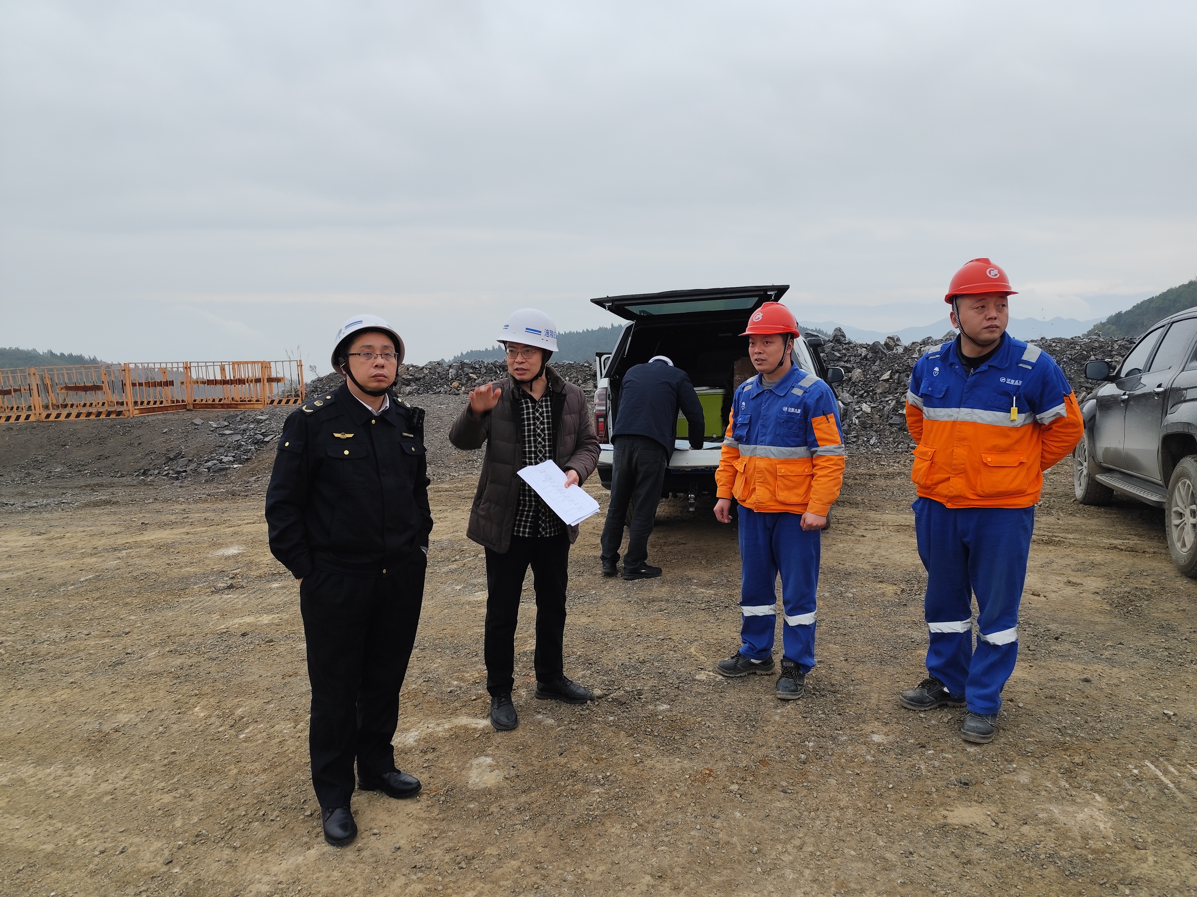 区应急管理综合行政执法支队支队长周斌、政委熊青云带领执法支队三大队会同矿山安全方面专家前往华新水泥重庆涪陵有限公司石灰石矿山进行2024年度监督执法检查。