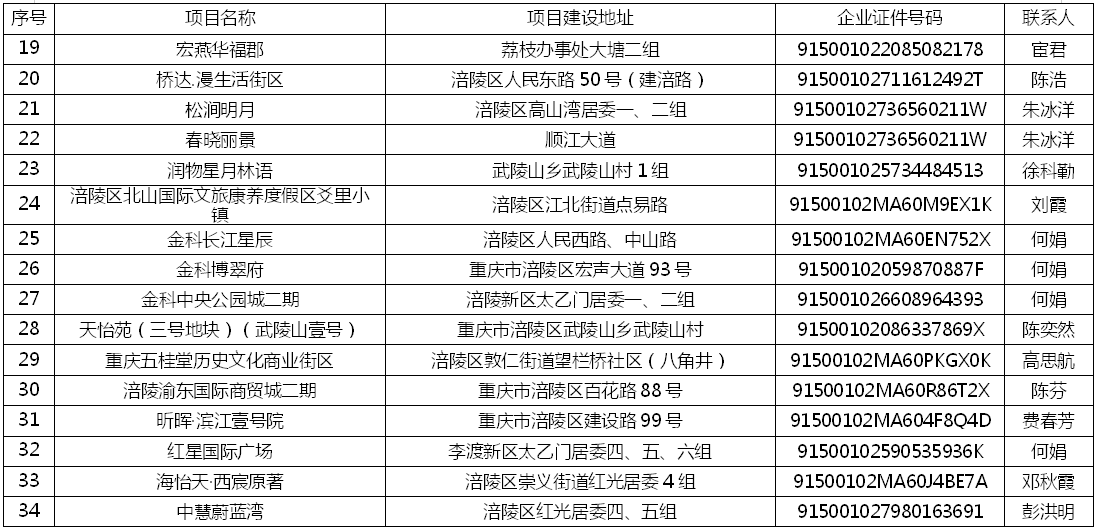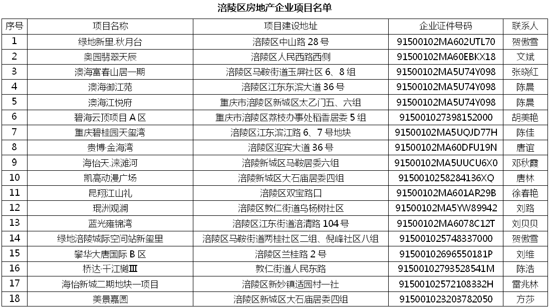 各房地产企业根据《涪陵区2022年房地产企业“双随机、一公开”抽查方案》相关要求,严格对照检查,开展自查自纠,主动查找问题,落实整改措施,并于11月10日前将自查自纠存在问题及整改情况报送至区住房城乡建委房地产管理科。