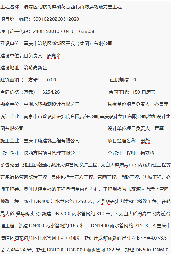 涪陵区马鞍街道稻花香西北角防洪功能完善工程 建筑工程施工许可