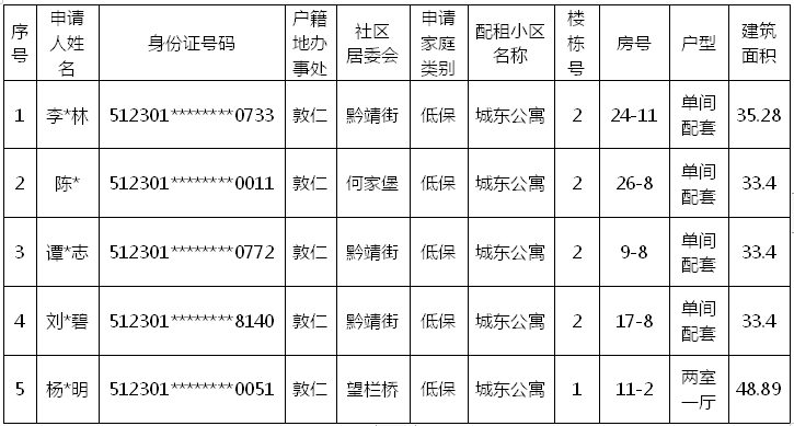 涪陵区江南(江东)城区2024年10月廉租住房抽签配租结果已于2024年11月26日在涪陵区住房保障中心四楼会议室,经相关街道办事处及申请人共同监督、见证,通过抽签方式产生。现将抽签配租结果公示如下: