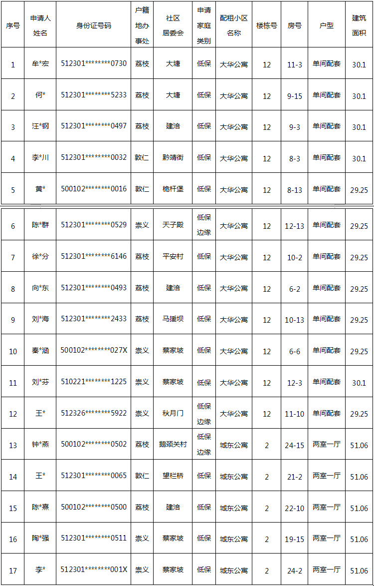 重庆市涪陵区住房保障中心 关于涪陵区江南(江东)城区2026年1-3月 廉租住房抽签配租结果公示