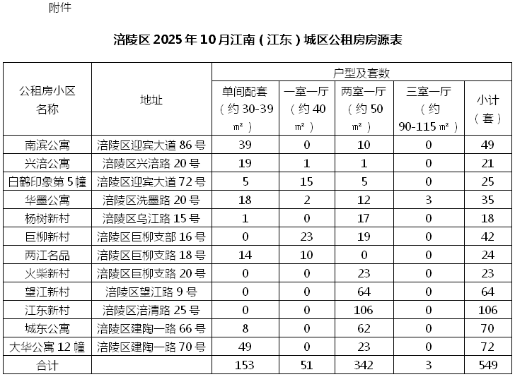 附件:涪陵区2025年10月江南(江东)城区公租房房源表