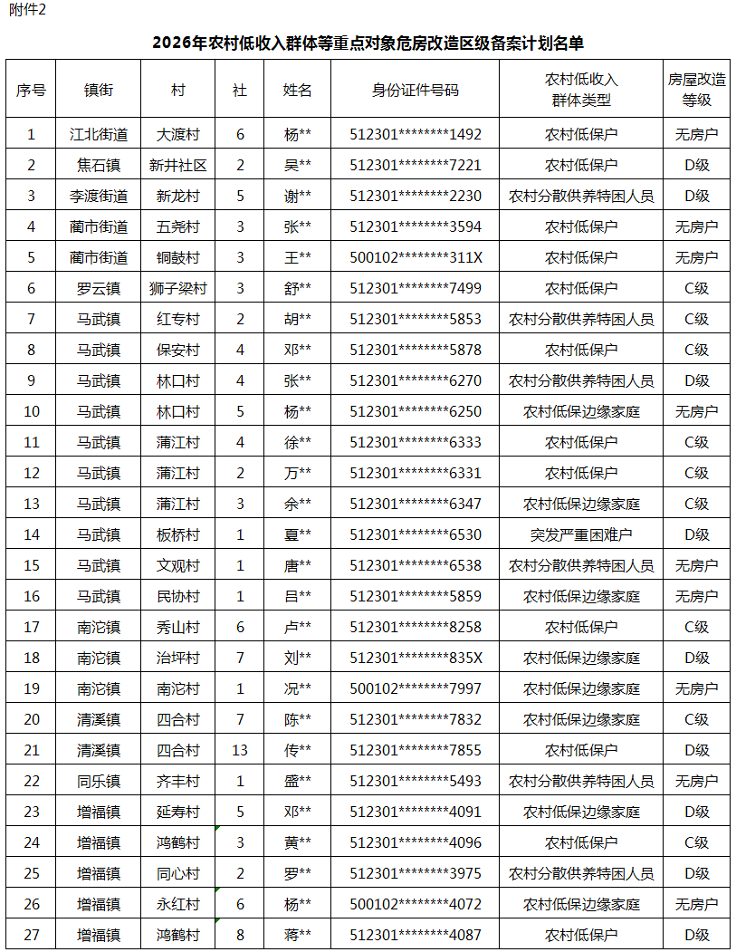 2. 2026年农村低收入群体等重点对象危房改造区级备案计划名单