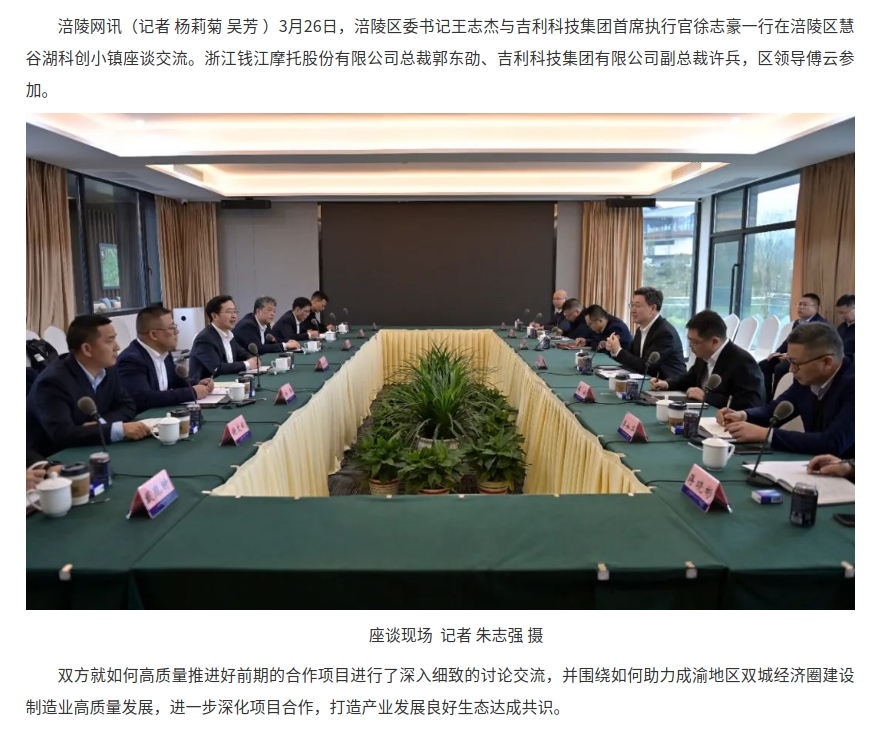 区委书记王志杰与吉利科技集团首席执行官徐志豪一行座谈交流