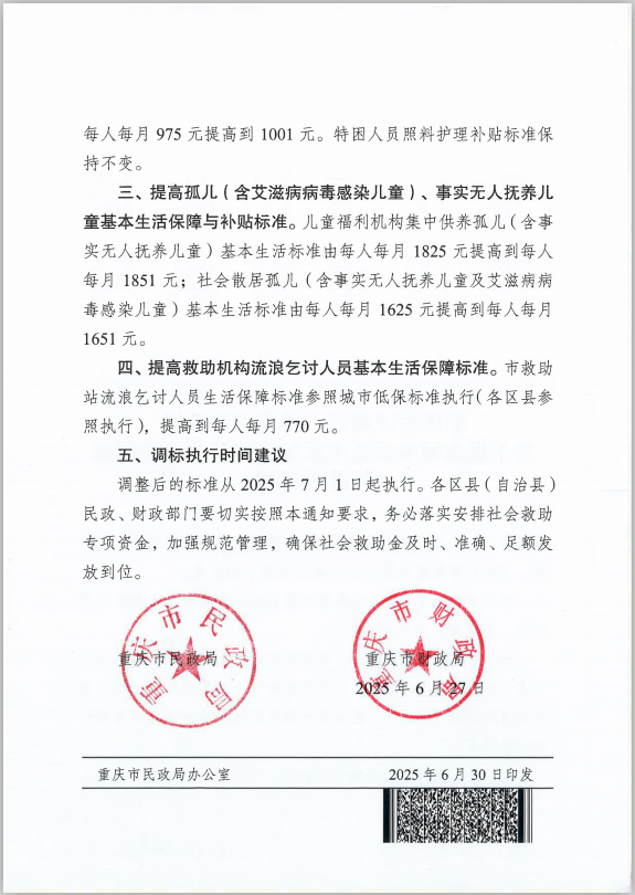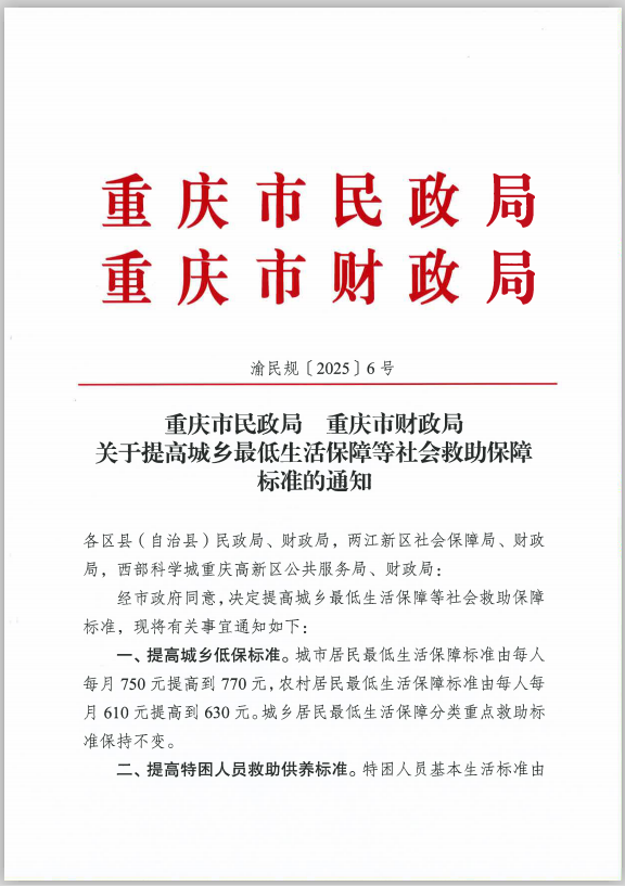 重庆市民政局 重庆市财政局关于提高城乡最低生活保障等社会救助保障标准的通知