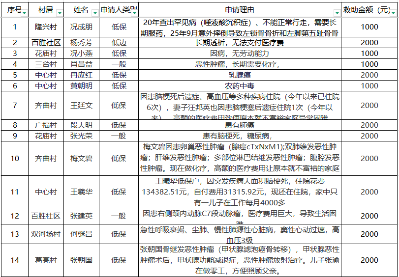 涪陵区百胜镇临时救助2025年11月台账