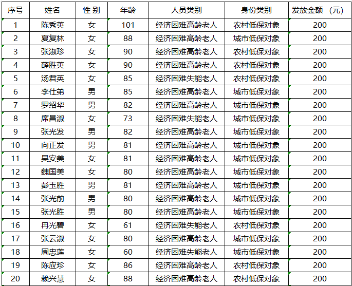 涪陵区百胜镇2026年2月经济困难高龄、失能老年人养老服务补贴发放明细表