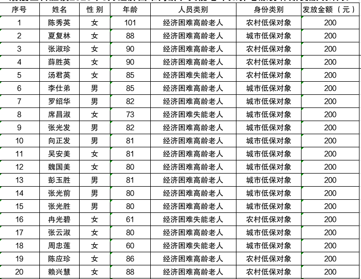 涪陵区百胜镇2026年3月经济困难高龄、失能老年如养老服务补贴发放明细表