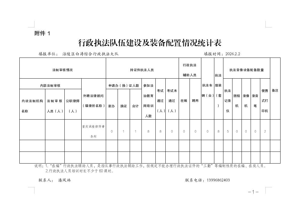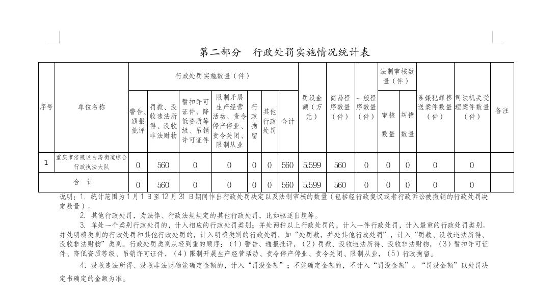 涪陵区白涛街道办事处2025年度行政执法数据公示