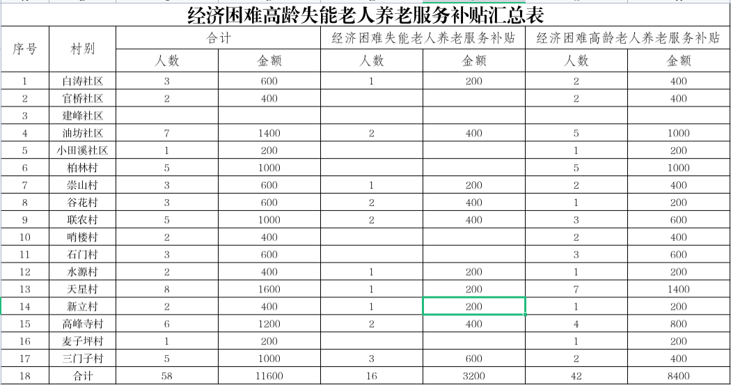 涪陵区白涛街道经济困难高龄失能老人养老服务补贴公示(2025年8月)