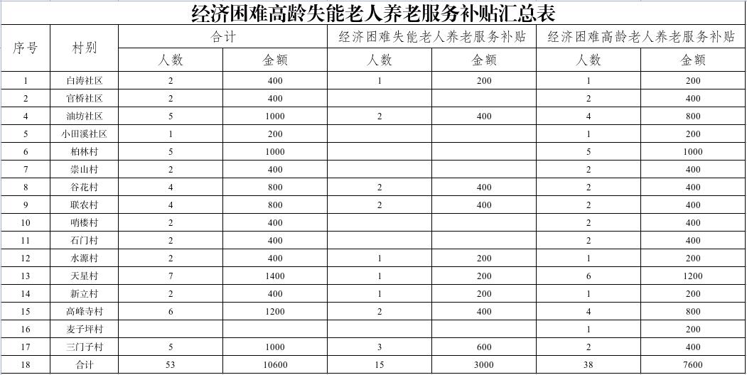 涪陵区白涛街道经济困难高龄失能老人养老服务补贴公示(2026年1月)