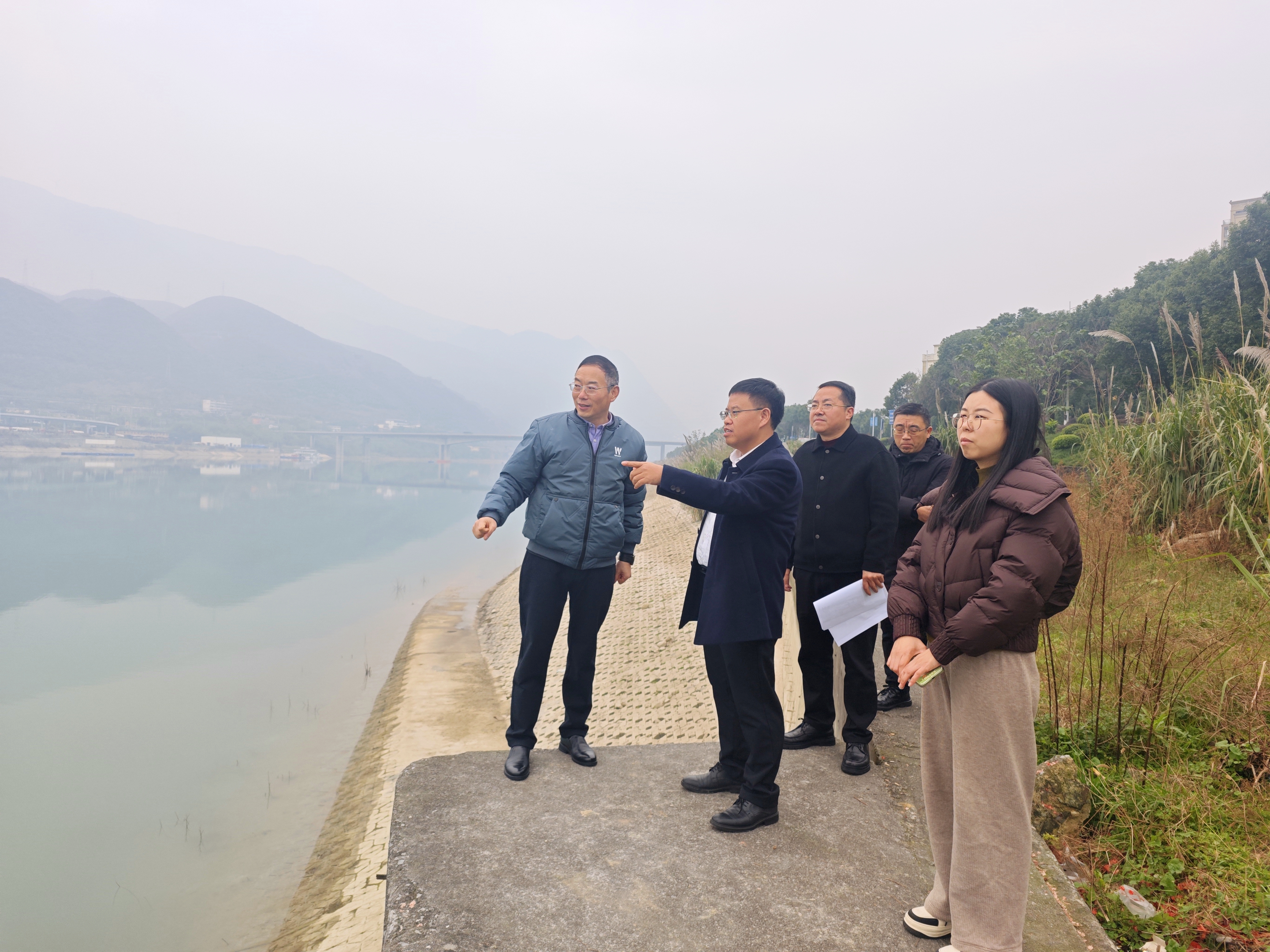 12月29日,区交通局党委委员、区港航管理局局长李明亮一行到白涛,现场调研指导白涛滨江路城市花园建设。街道党工委书记刘有志、办事处副主任郑杰、秦朝洪陪同。
