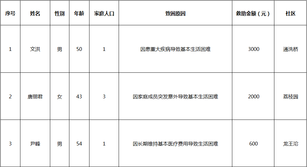 涪陵区崇义街道2025年10月份临时困难救助台账