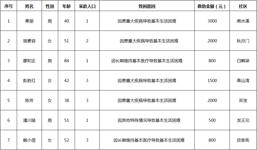 涪陵区崇义街道2025年11月份临时困难救助台账
