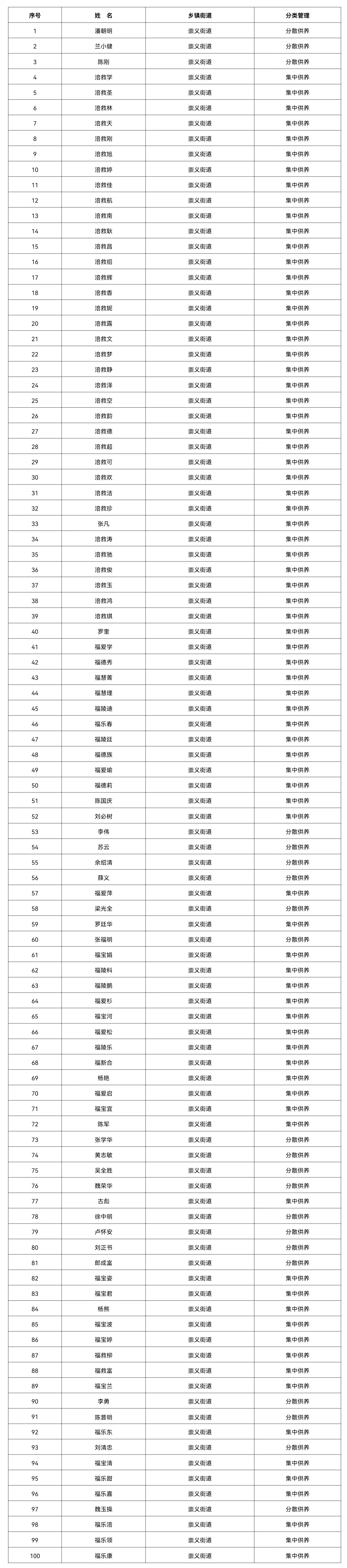 涪陵区崇义街道2026年1月特困人员名单