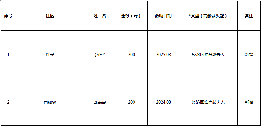 2025年8月涪陵区崇义街道经济困难高龄失能老年人养老服务补贴新增、停发名单