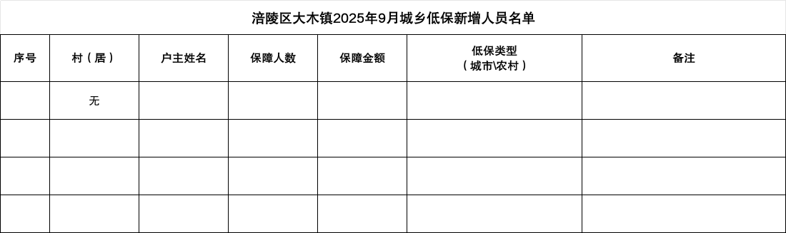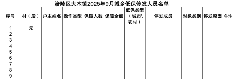 涪陵区大木镇2025年9月城乡低保新增、停发及个人发放明细表