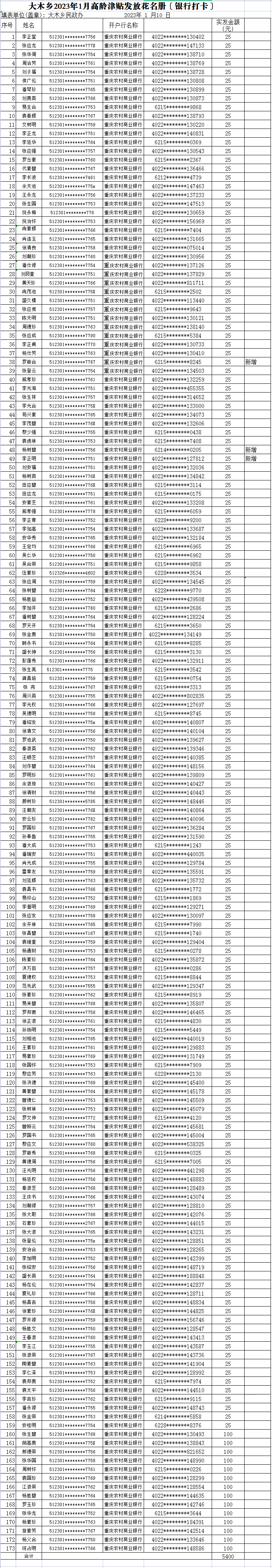 涪陵区大木乡2023年1月高龄津贴发放花名册