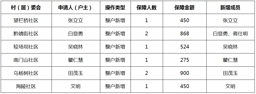 涪陵区敦仁街道2025年10月低保人员新增名单